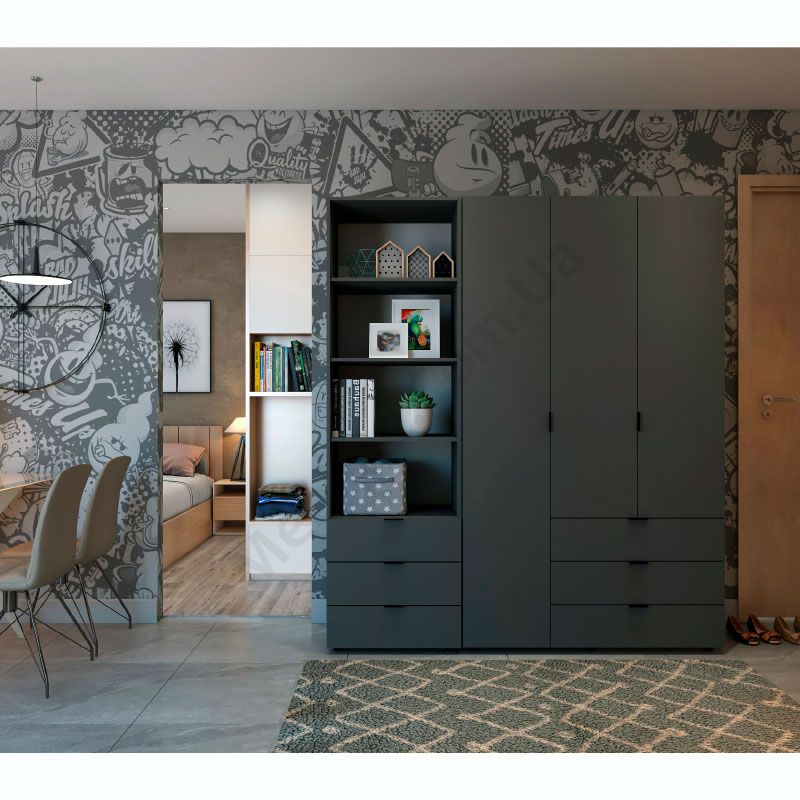 У магазині Ви можете купити Шафа для одягу Гелар 2ДСП з пеналом Графіт за доступною ціною та доставкою по всій Україні. Обирайте Шафа-стелаж від фабрики Doros для облаштування передпокою, вітальні, спальні в інтернет магазині меблів.