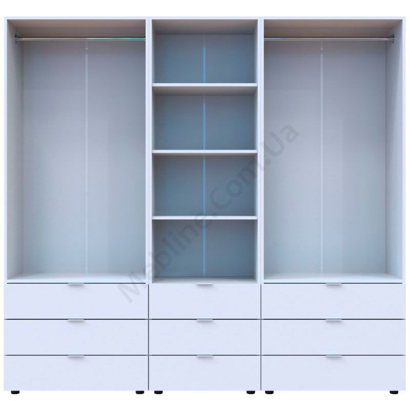 Дві дводверні шафи зі стелажем та висувними шухлядами.