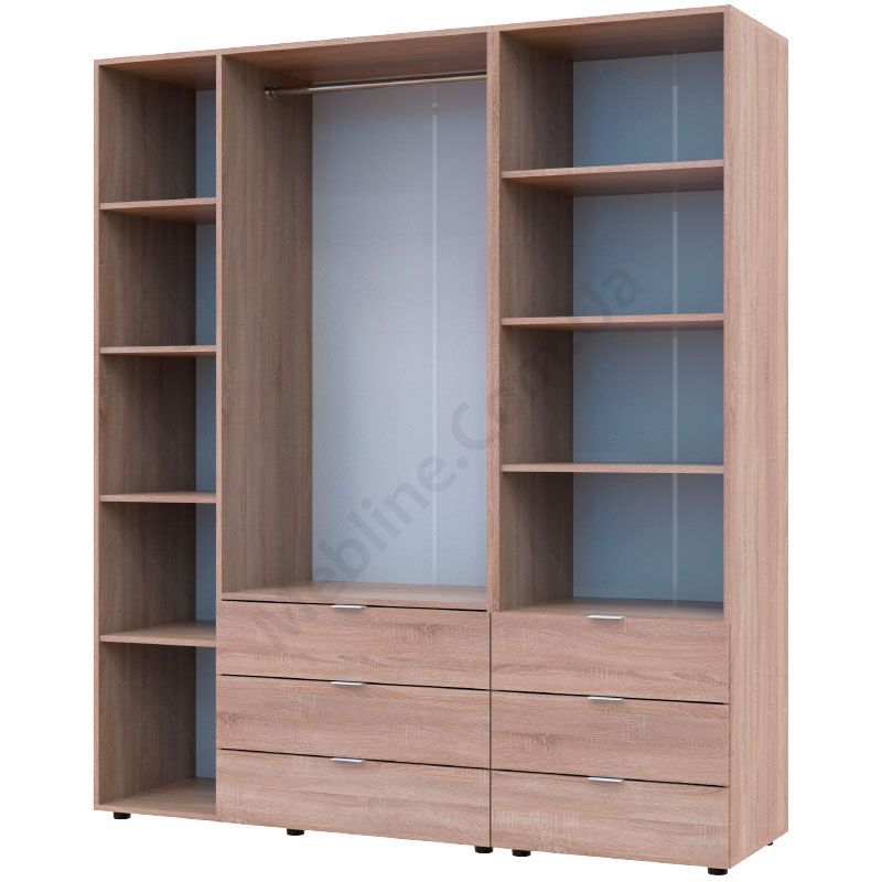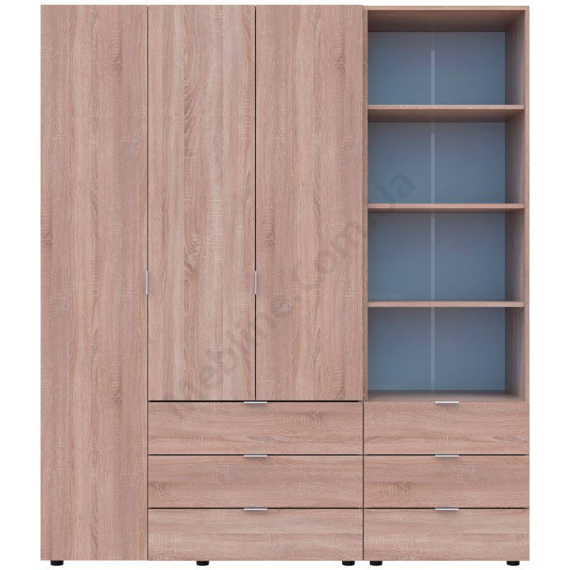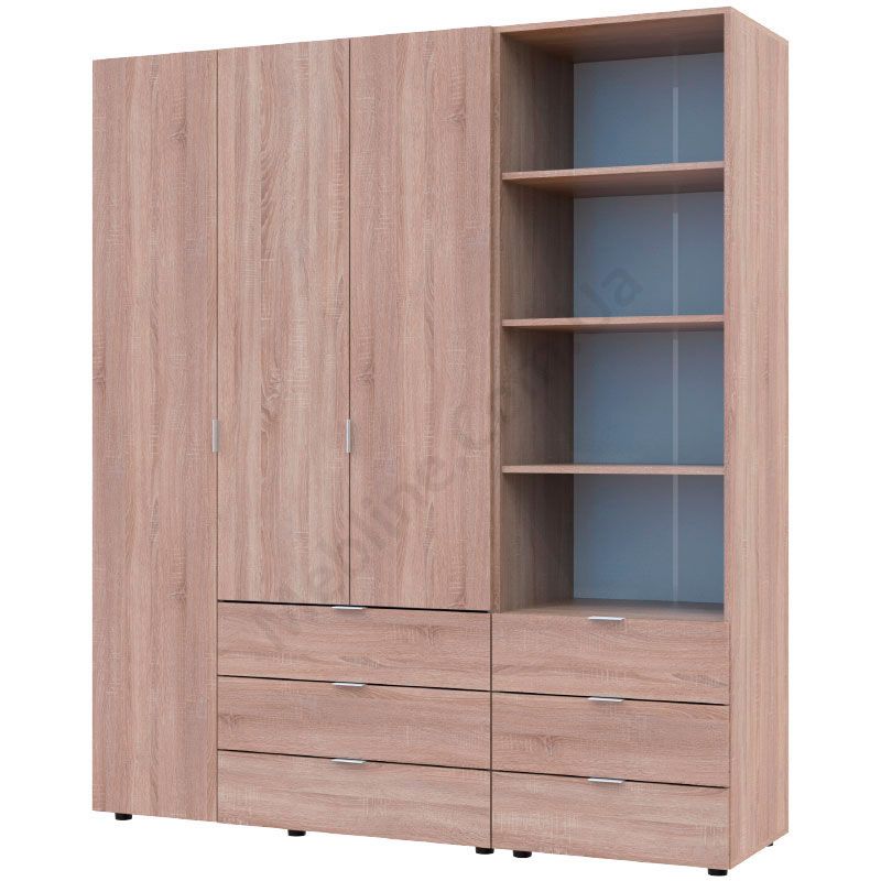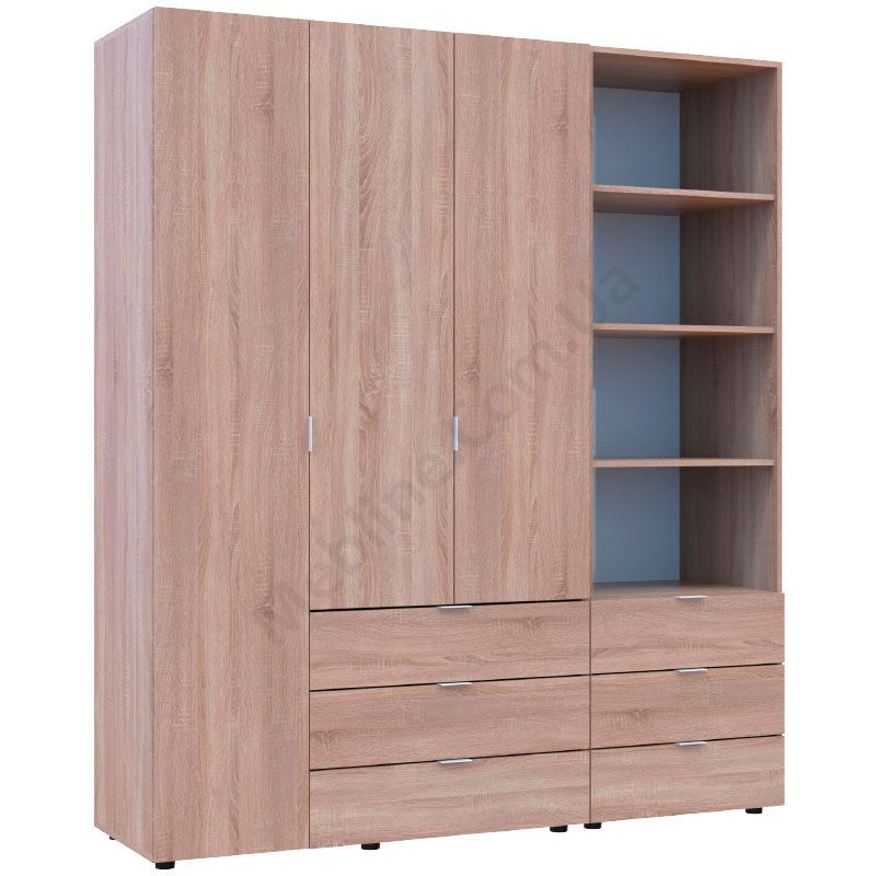 Тридверна шафа зі стелажем та висувними шухлядами.
