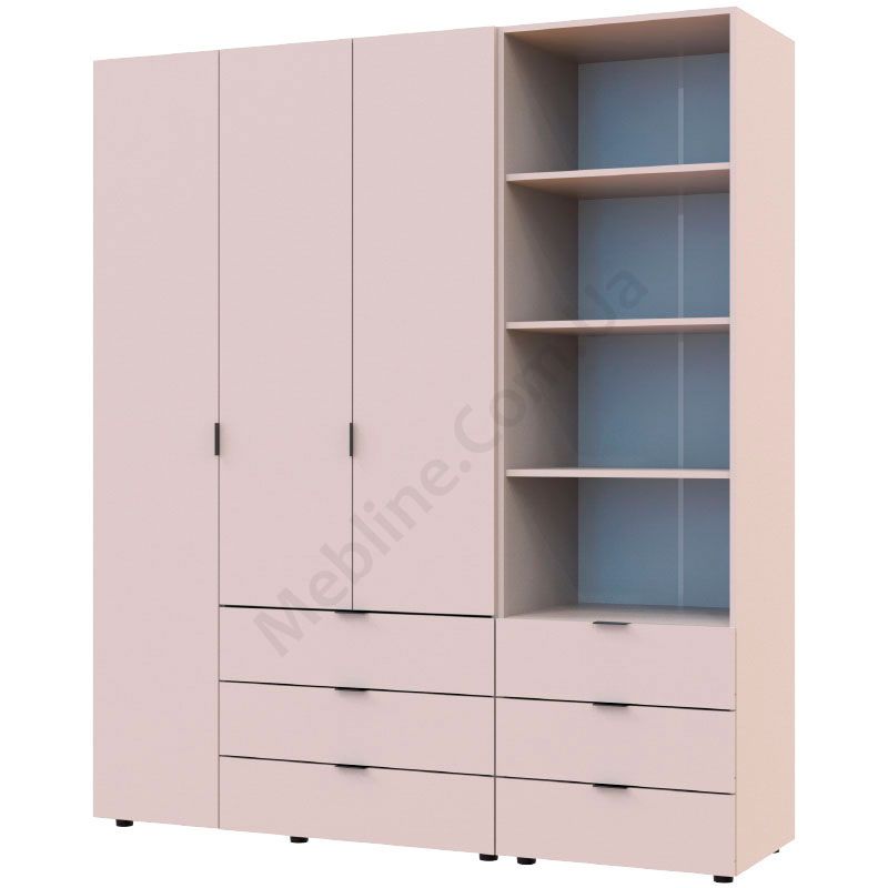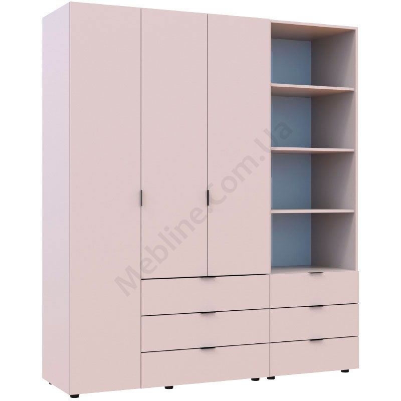 Тридверна шафа зі стелажем та висувними шухлядами.