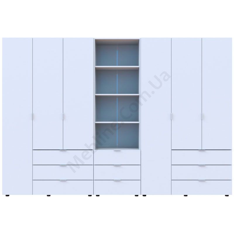 Дві тридверні шафи зі стелажем та висувними шухлядами.