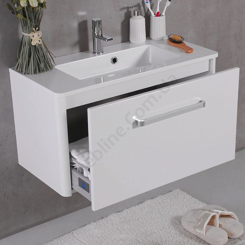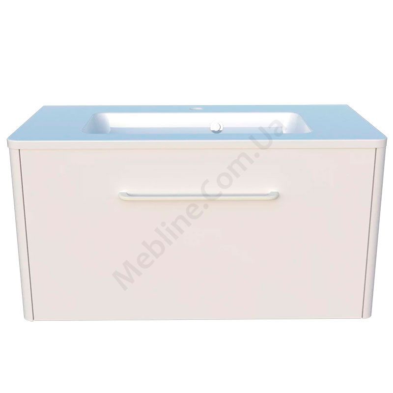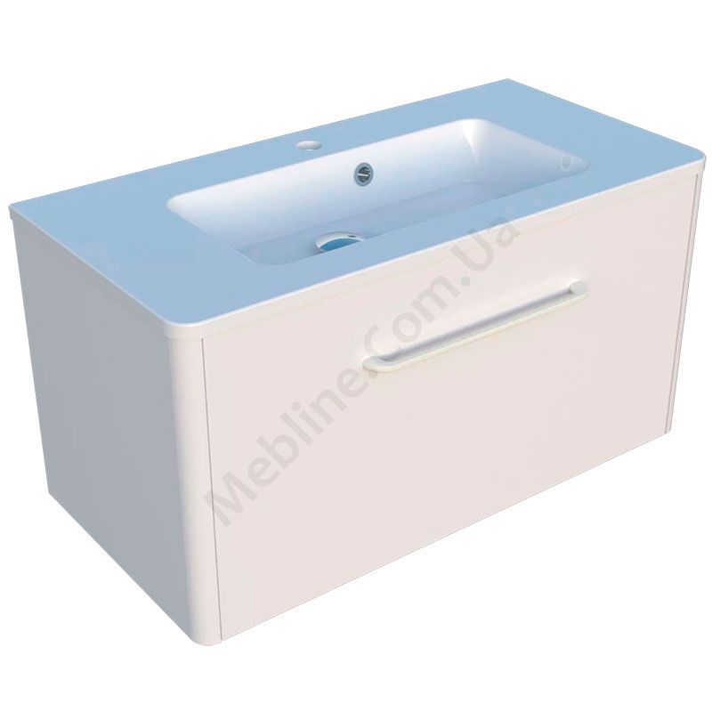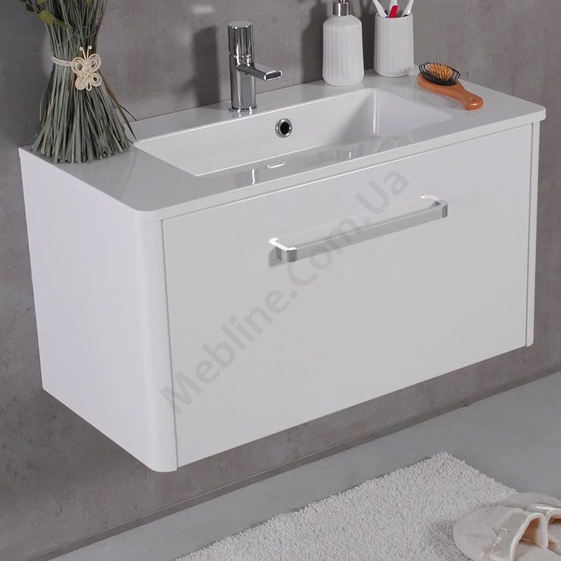 Навісна тумба для ванної з умивальником та висувною шухлядою.