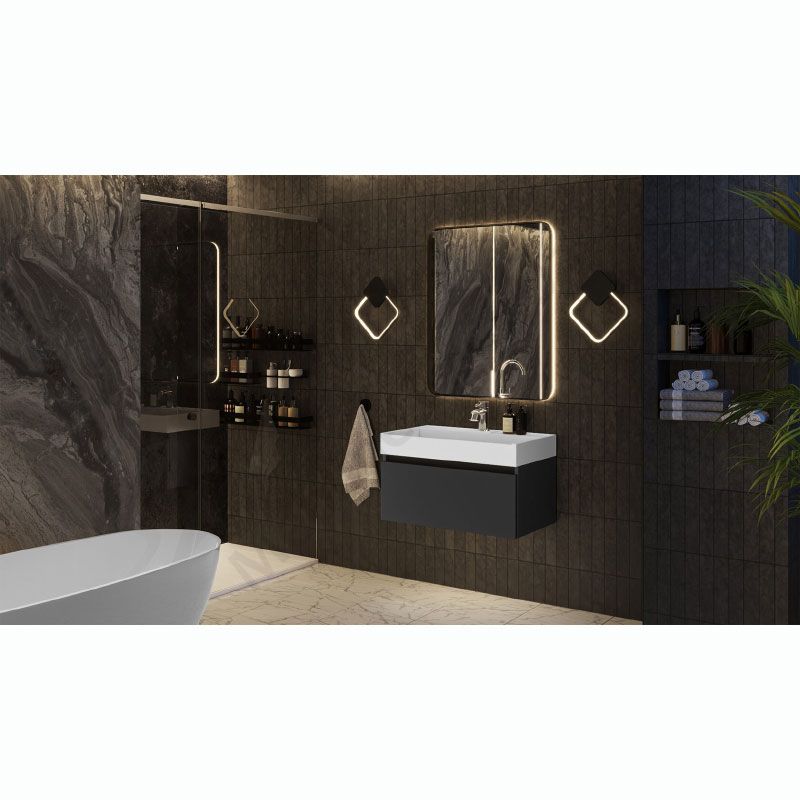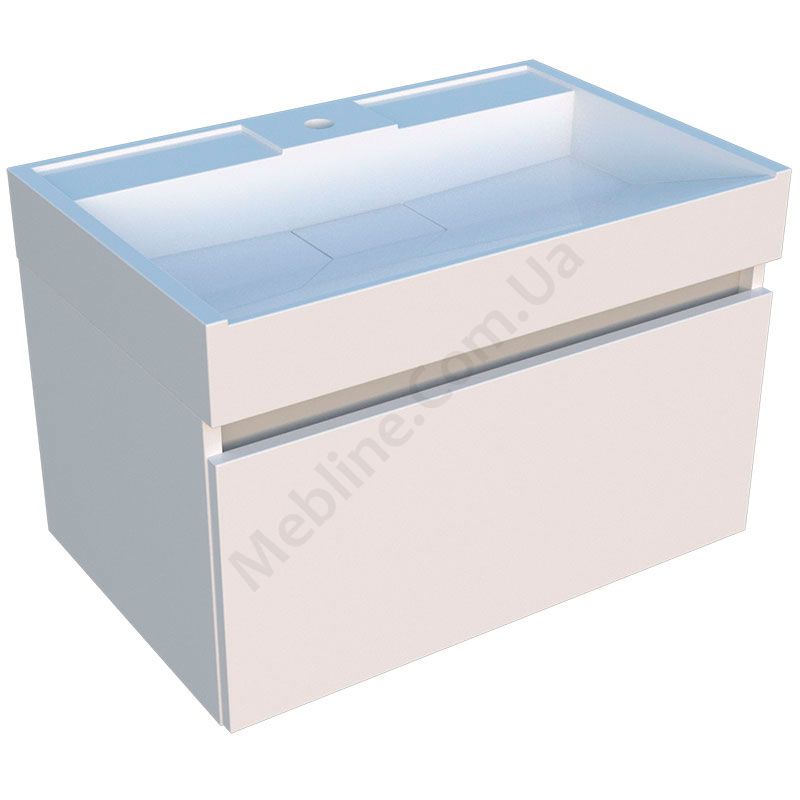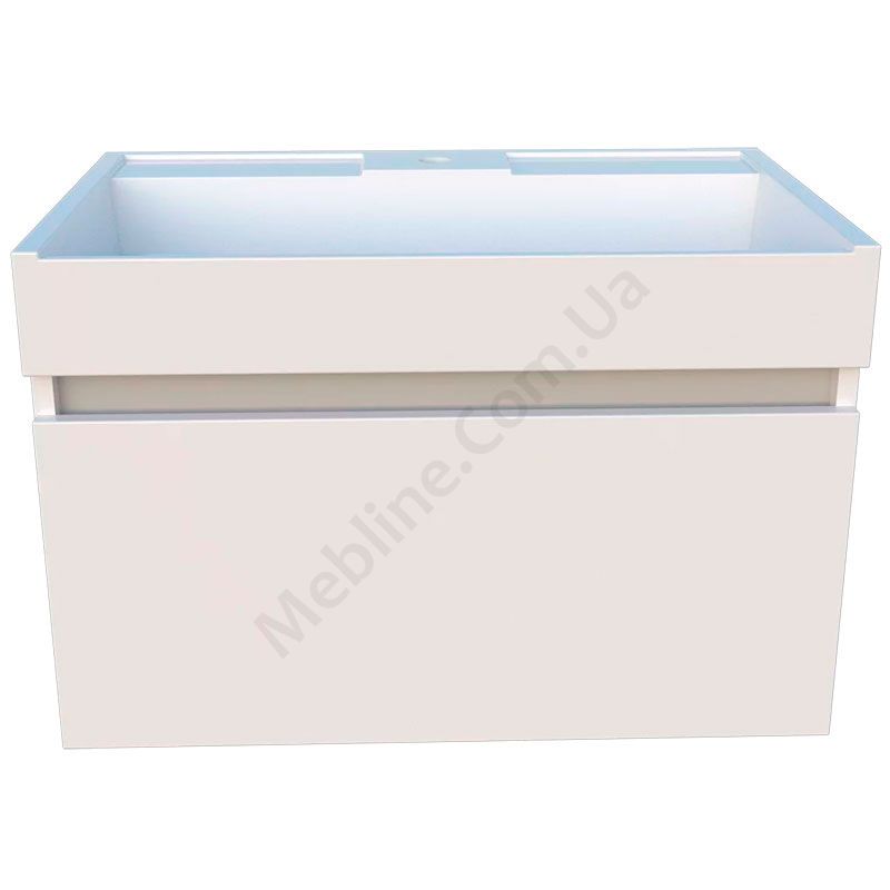 Навісна шафка для ванної з умивальником та висувною шухлядою.