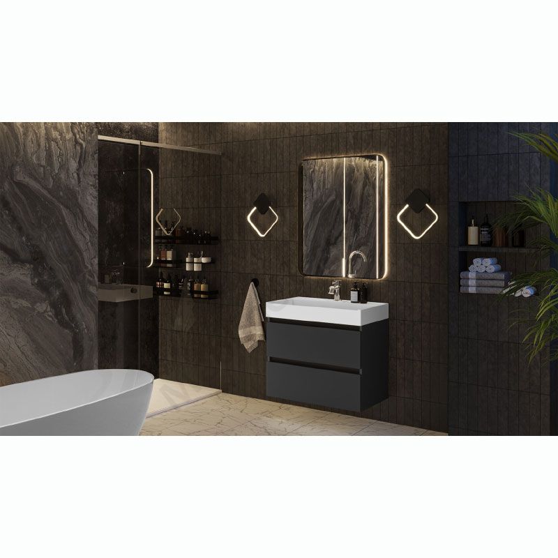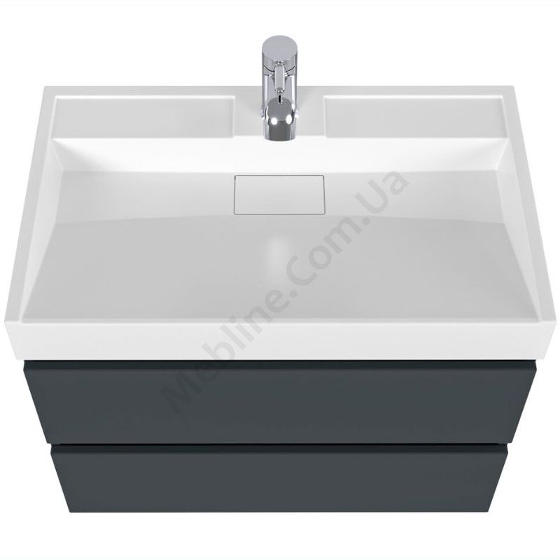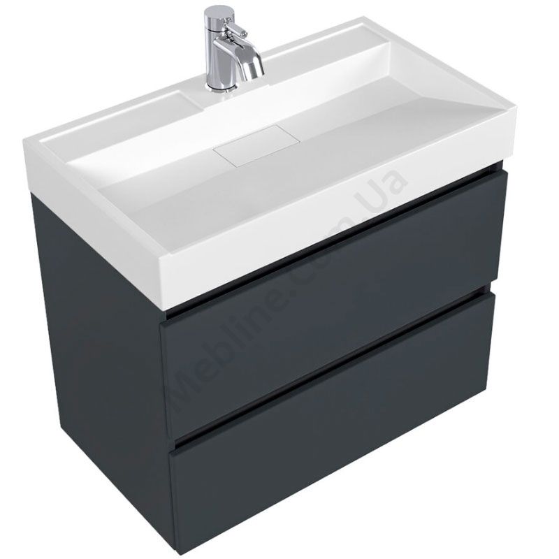 Навісна шафка для ванної з умивальником та двома висувними шухлядами.