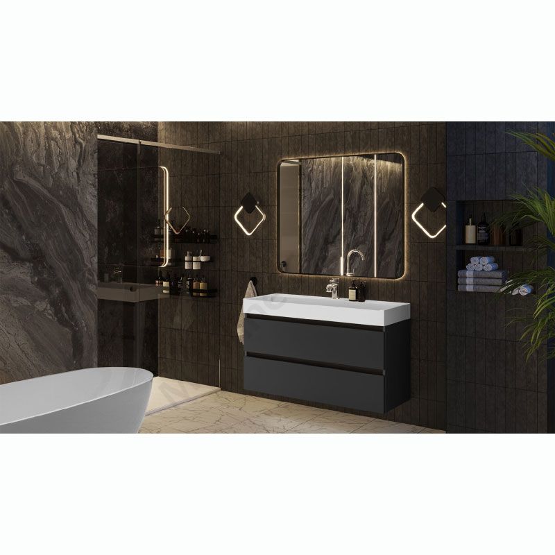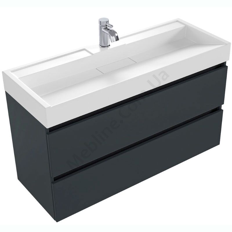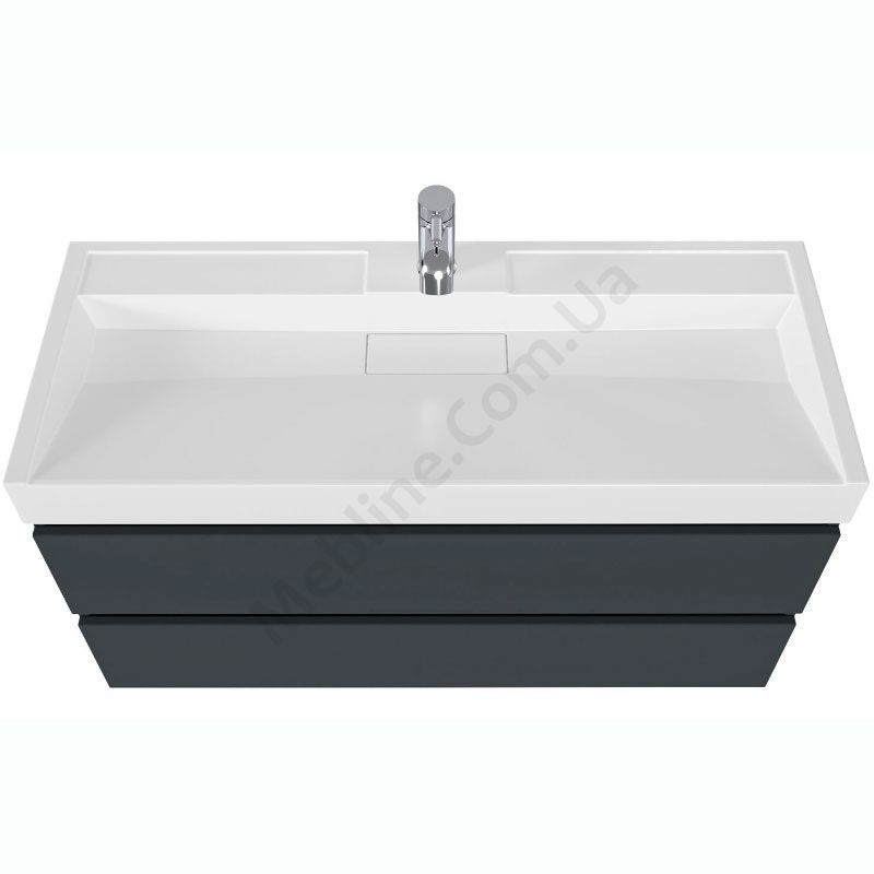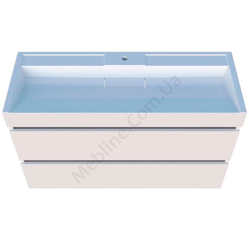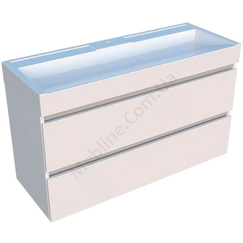 Навісна шафка для ванної з умивальником та двома висувними шухлядами.
