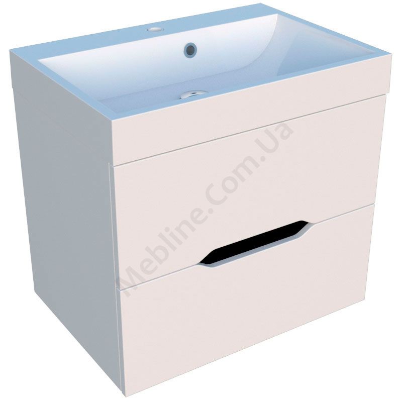 Навісна шафка для ванної з умивальником та двома висувними шухлядами.