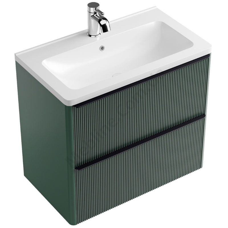 Навісна шафка для ванної з умивальником та висувними шухлядами.