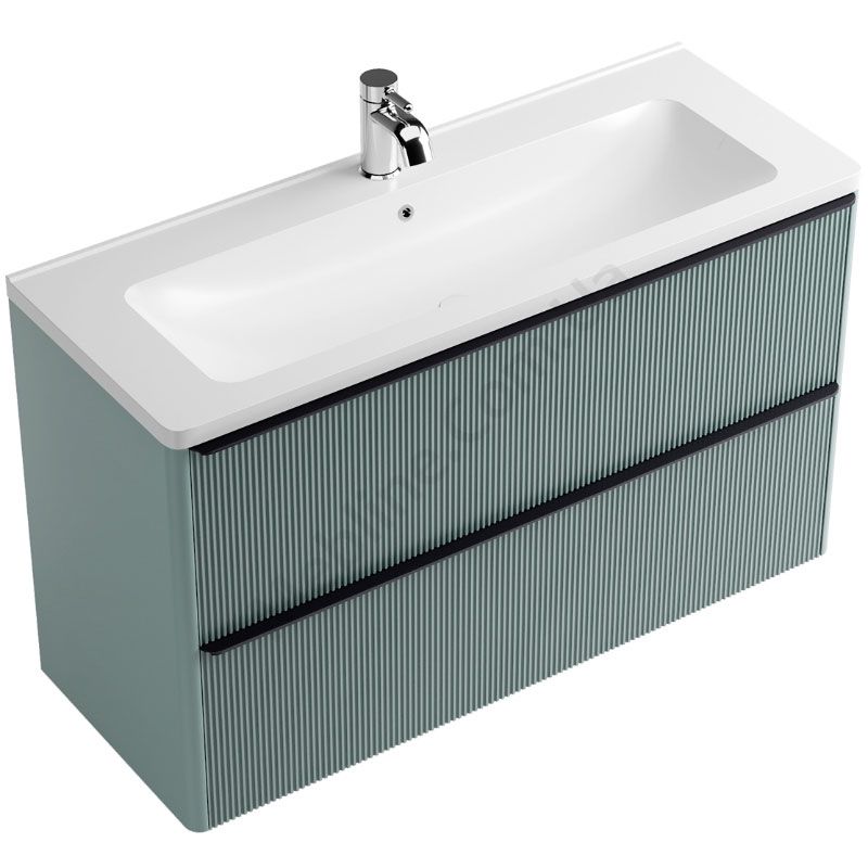 Навісна шафка для ванної з умивальником та висувними шухлядами.