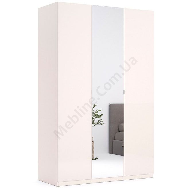 Тридверна шафа з дзеркалом, штангами та полицями.