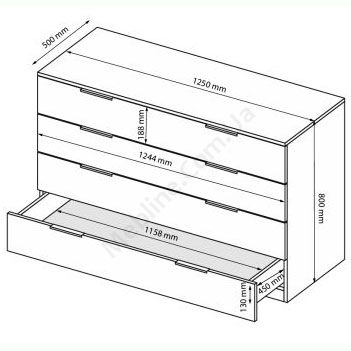 - Задня стінка виготовлена з ХДФ 2,5 мм білого кольору.