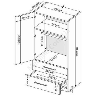 - Передбачена свердловка для додаткового внутрішнього наповнення шаф — полиць коротких, довгих, Т-подібних та шухляд для білизни.