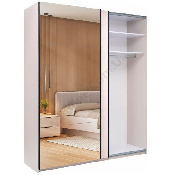 Дводверна шафа-купе з дзеркалом та штангами для одягу.