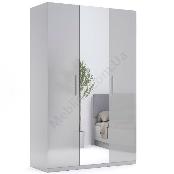 Тридверна шафа з дзеркалом, штангами та полицями.