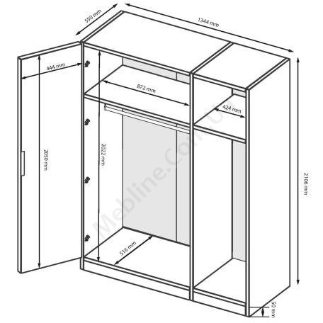 - За дверцятами по штанзі для одягу та верхній поличці.