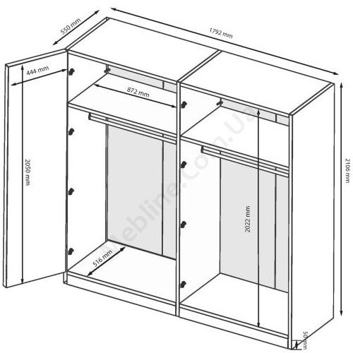 - Задня стінка ХДФ 2,5 мм білого кольору.