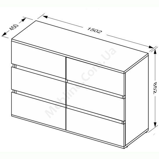 Комод з шістьма висувними шухлядами.