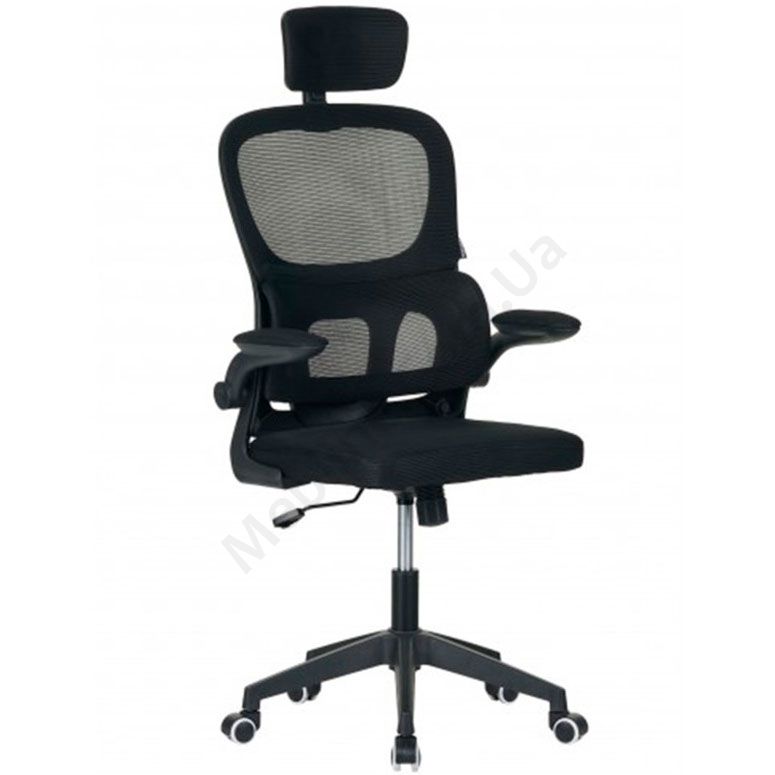 Офісне крісло з сітчастою спинкою, підлокітниками, регулюванням висоти.