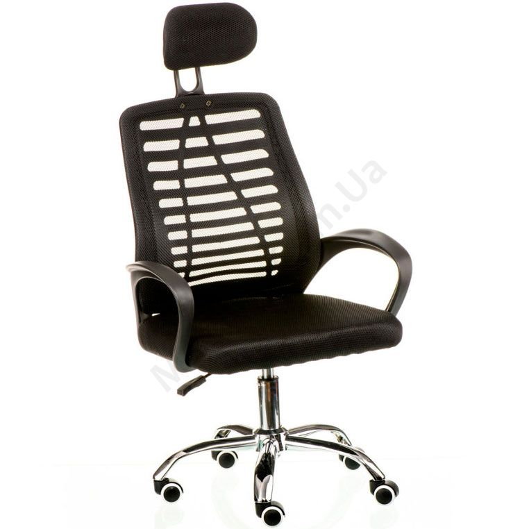 Офісне крісло з сітчастою спинкою, підлокітниками, регулюванням висоти.
