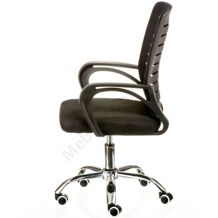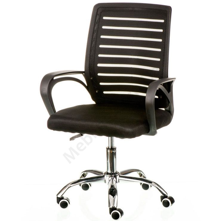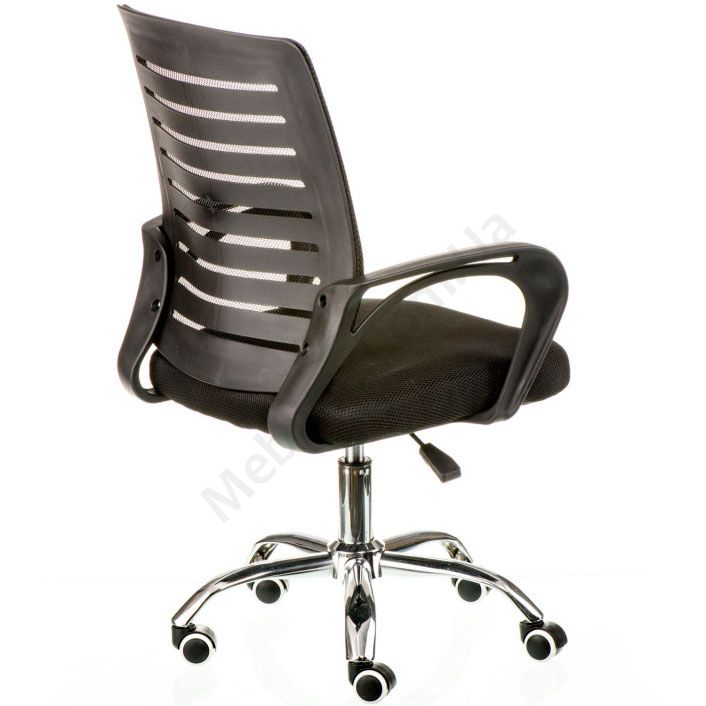 Офісне крісло з сітчастою спинкою, регулюванням висоти та режимом хитання.