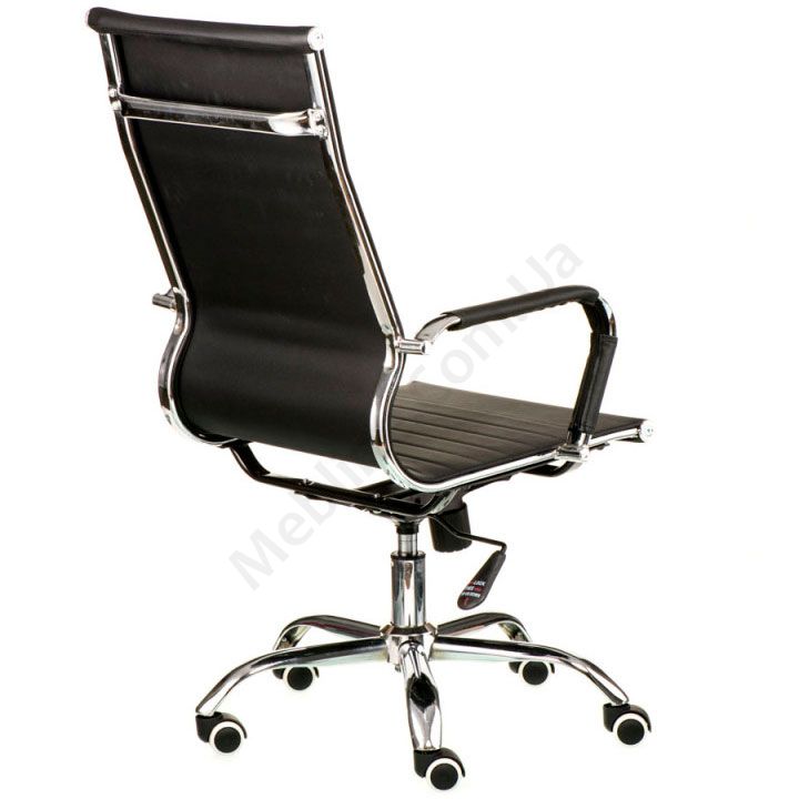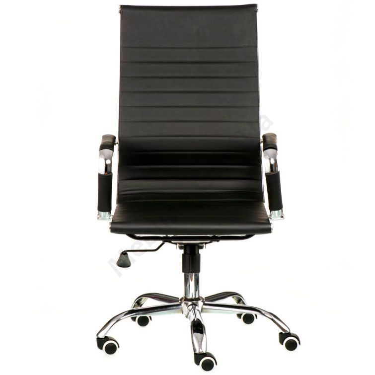 Тонке крісло для керівника з накладками на підлокітниках, регулюванням висоти та прогумованими коліщатками.
