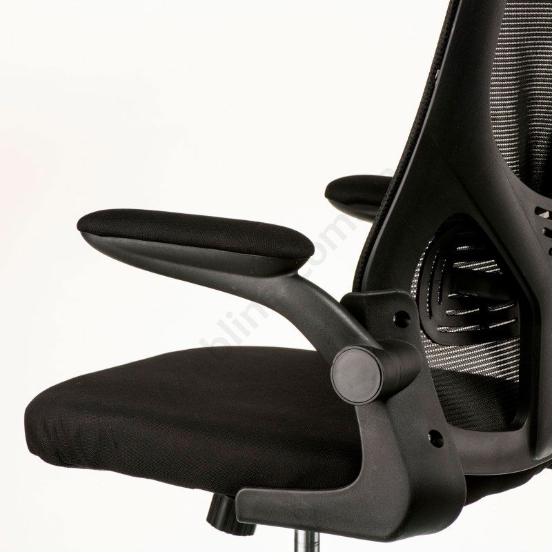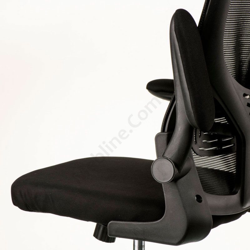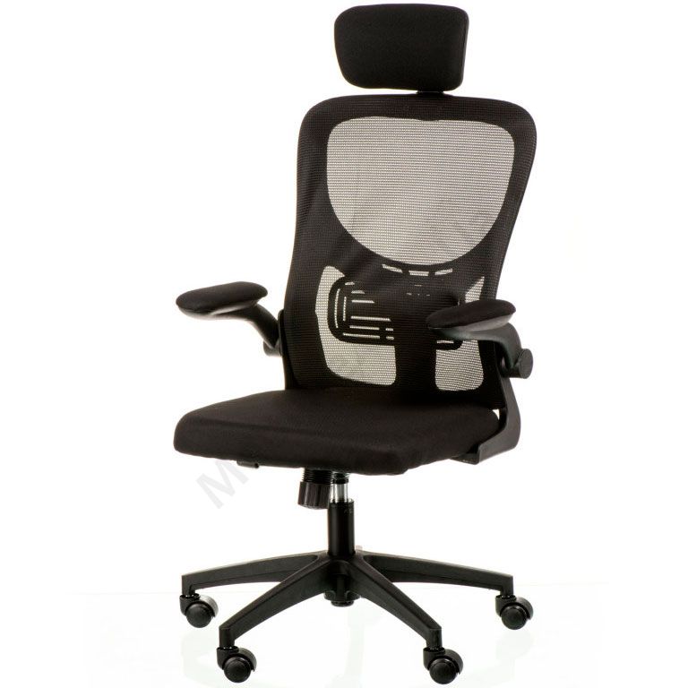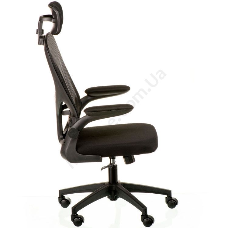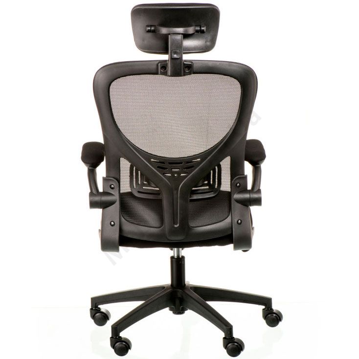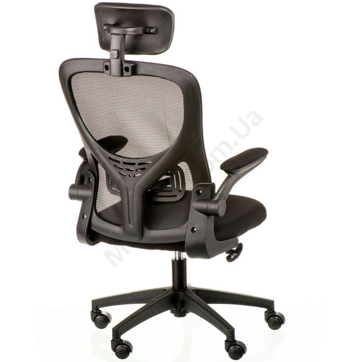 Крісло для керівника з сітчастою спинкою, режимом хитання та відкидними підлокітниками.