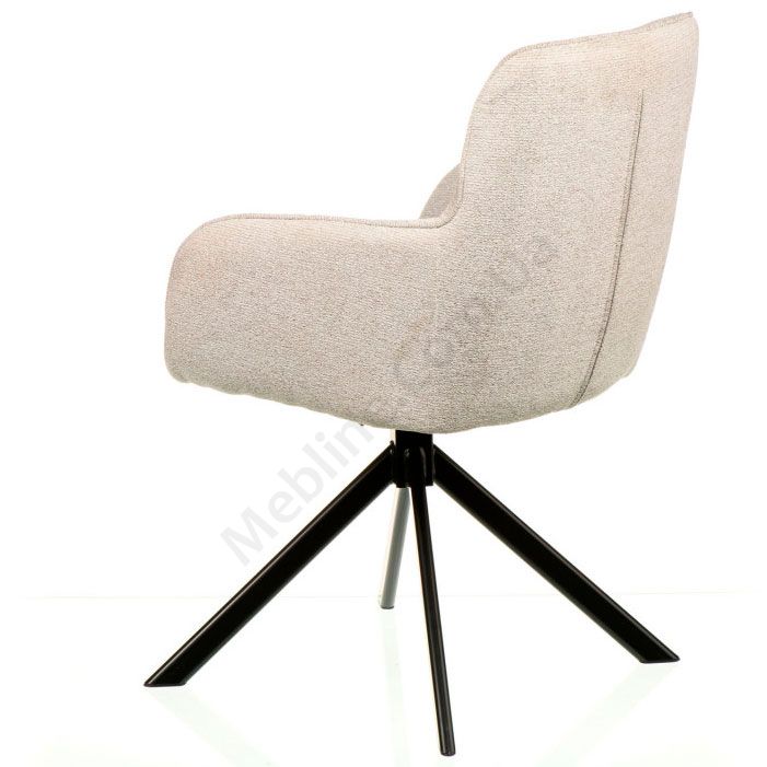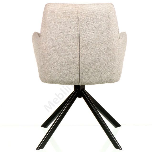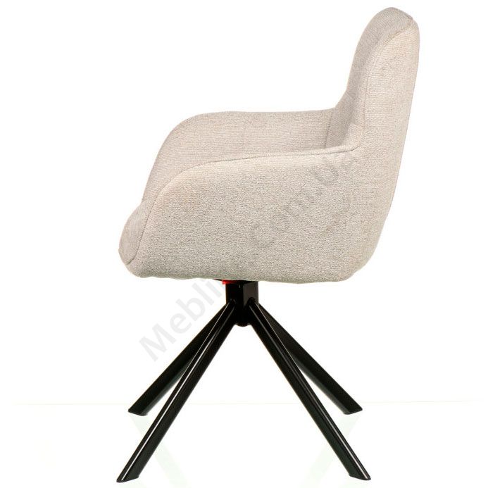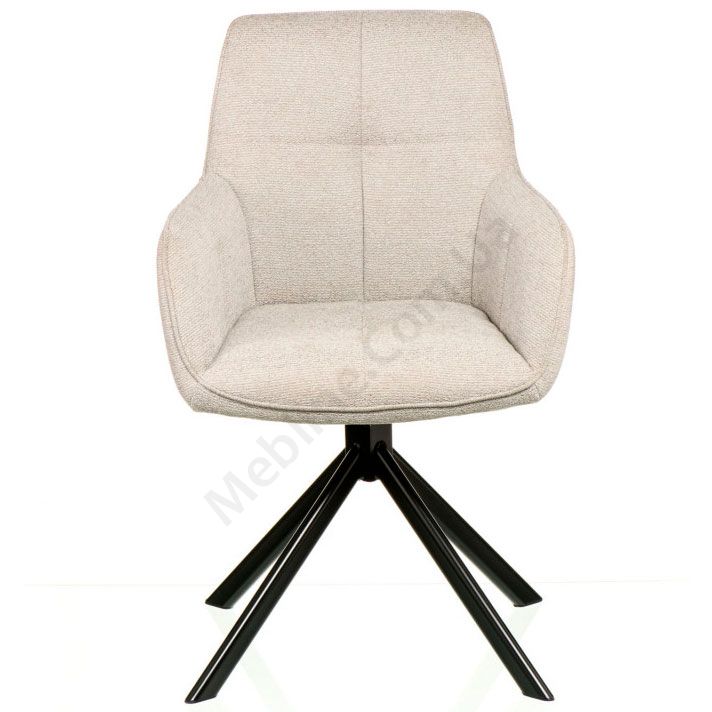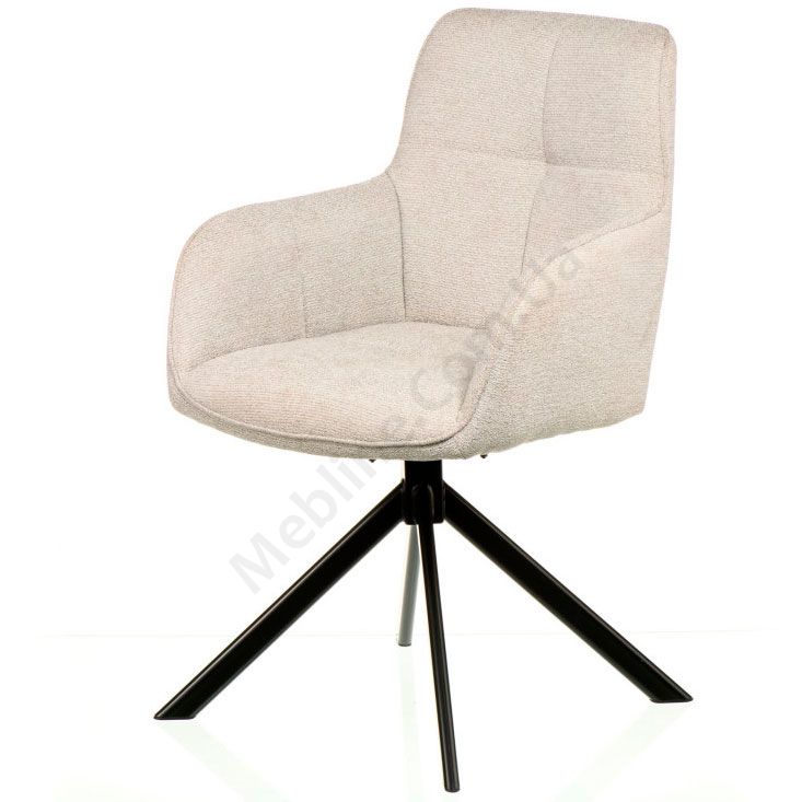 М’який поворотний стілець з підлокітниками на металевих чорних ніжках.