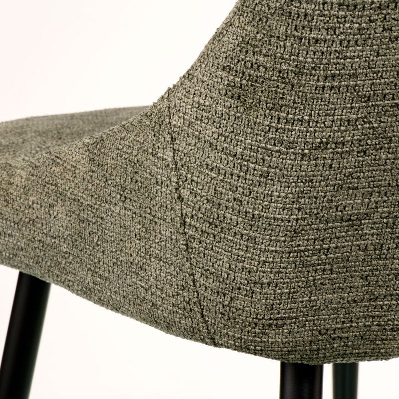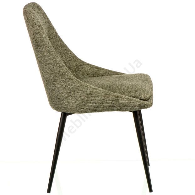 Стілець з м’якою оббивкою на металевих чорних ніжках.