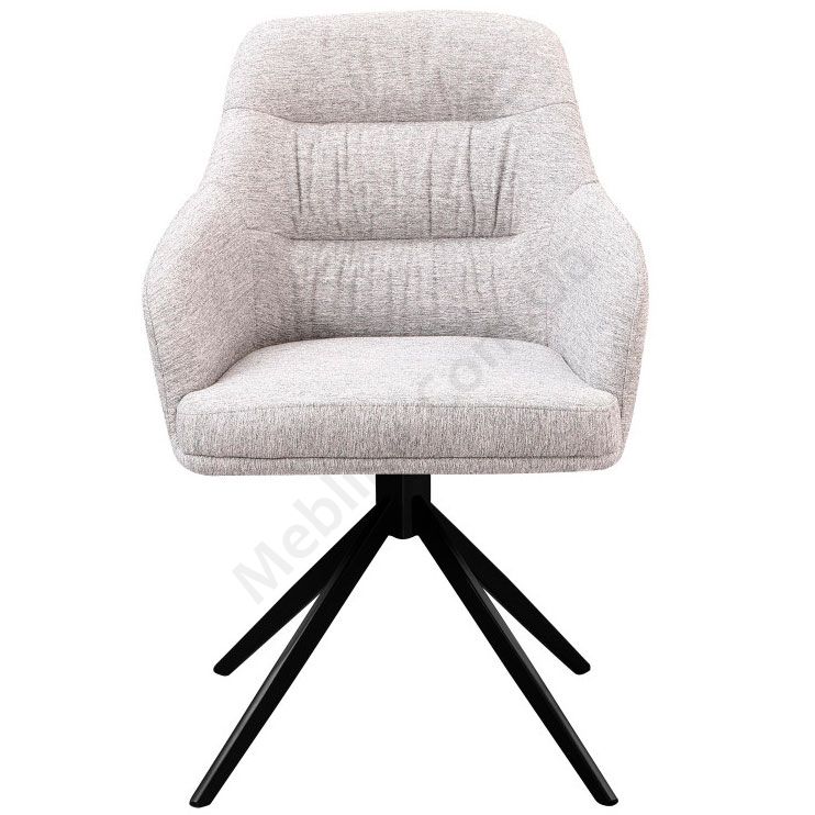 М’яке поворотне крісло на металевих чорних ніжках з підлокітниками.