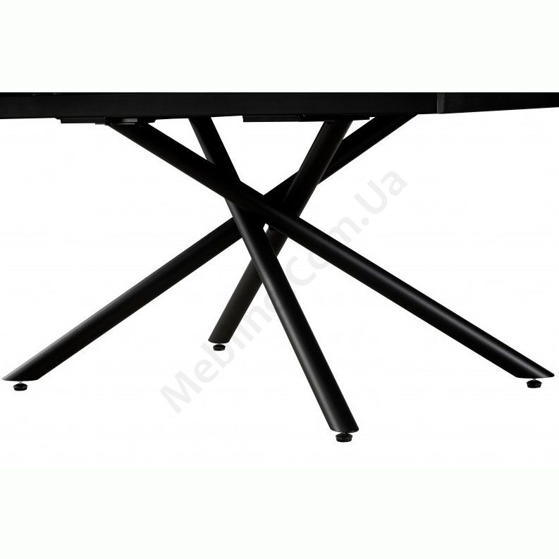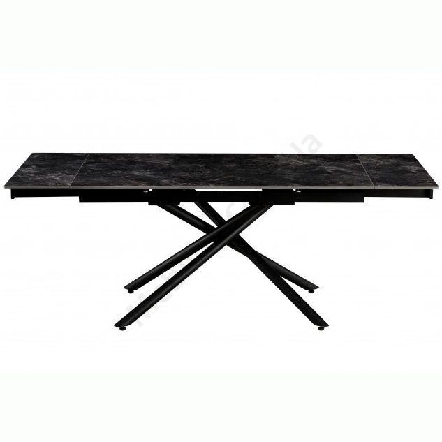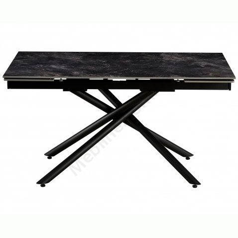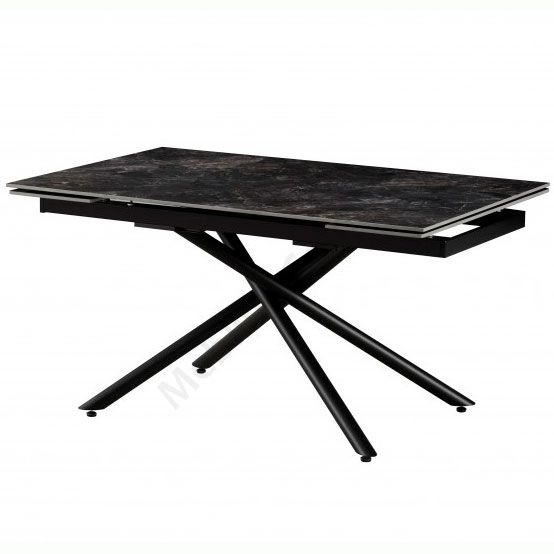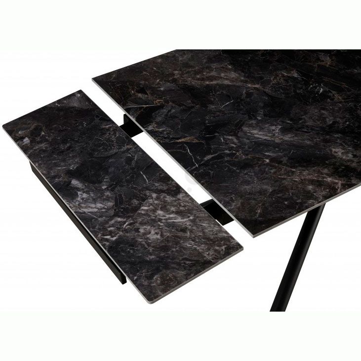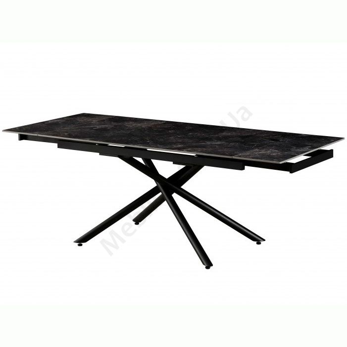 Розкладний обідній стіл на металевих ніжках з керамічною стільницею.