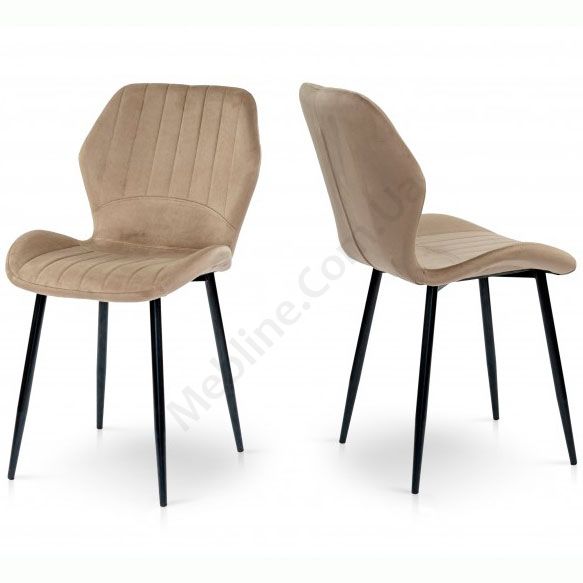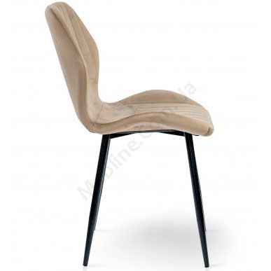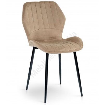 М’який стілець без підлокітників на металевих ніжках з оббивкою із велюру.