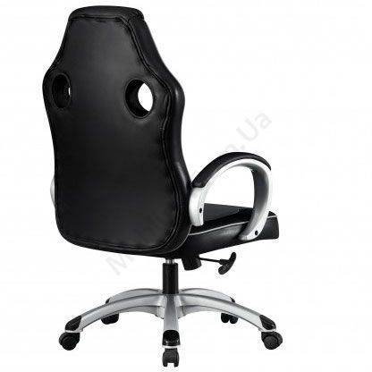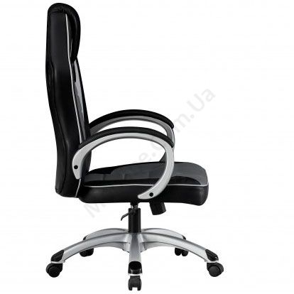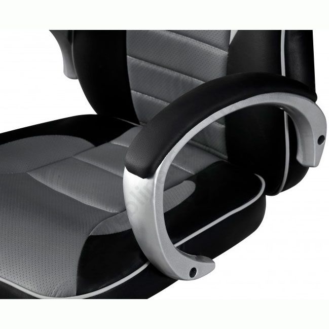 Комп’ютерне геймерське крісло з нерегульованими підлокітниками та оббивкою з шкірзаму.