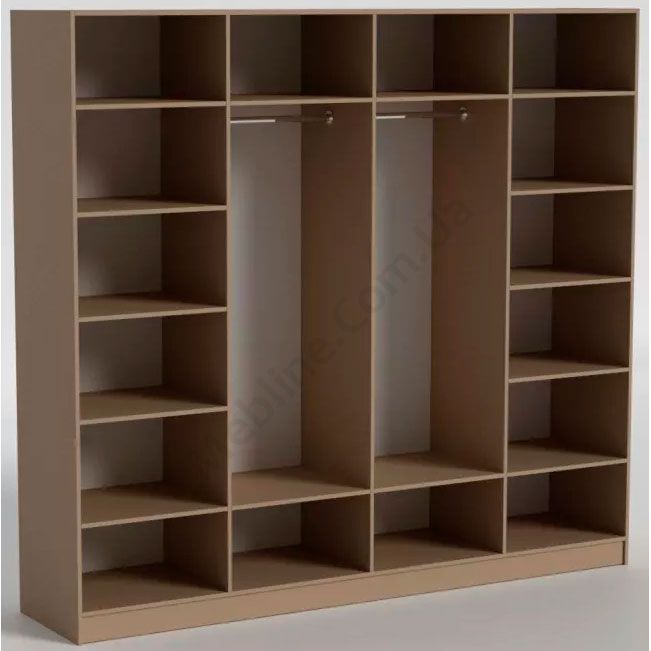 Чотиридверна шафа з дотягувачем, штангами та полицями.
