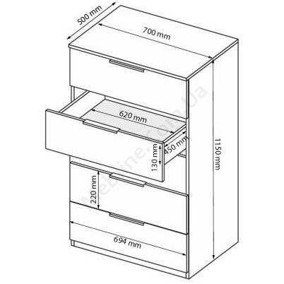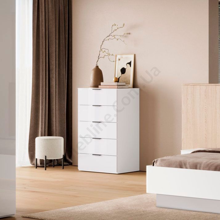 Комод з п’ятьма висувними шухлядами.