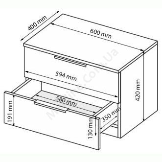 - Задня стінка виготовлена з ХДФ 2,5 мм білого кольору.