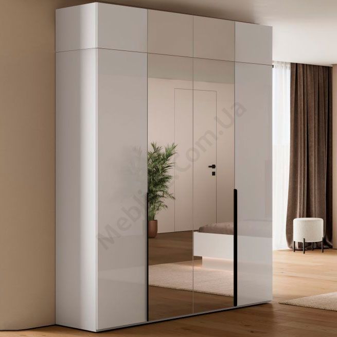 Чотиридверна шафа з дзеркалом, штангами та полицями.