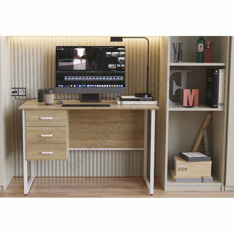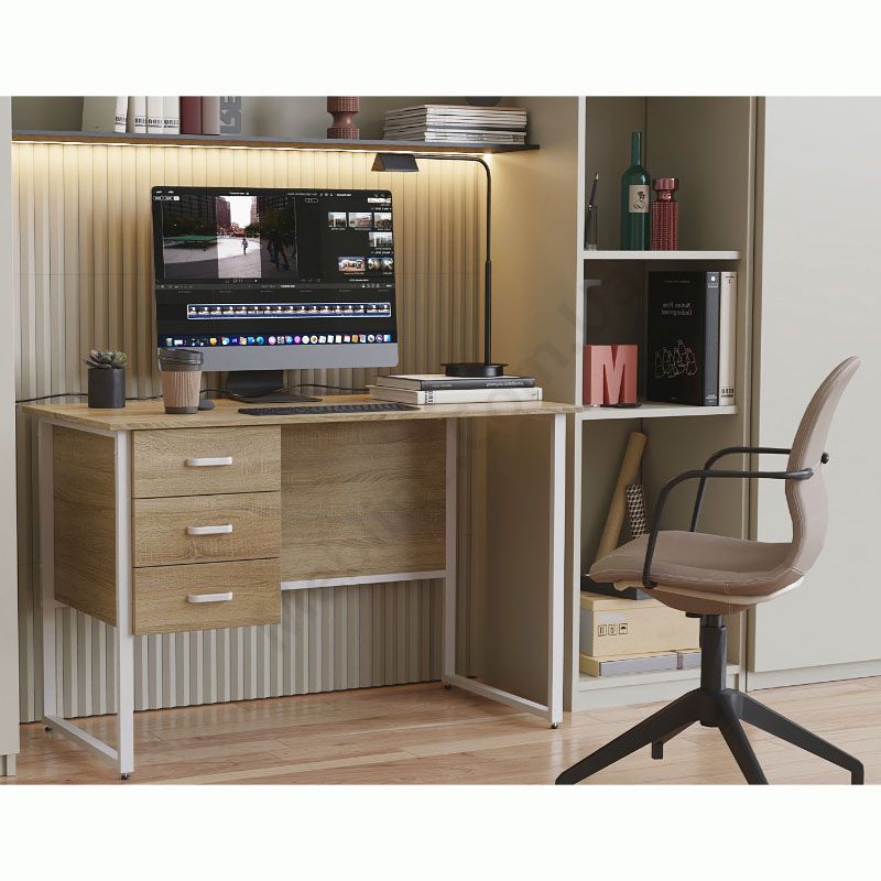 Комп’ютерний стіл з висувними шухлядами на металевих ніжках.