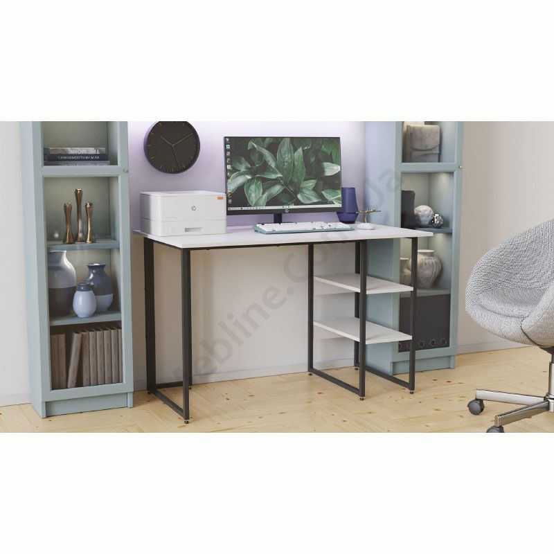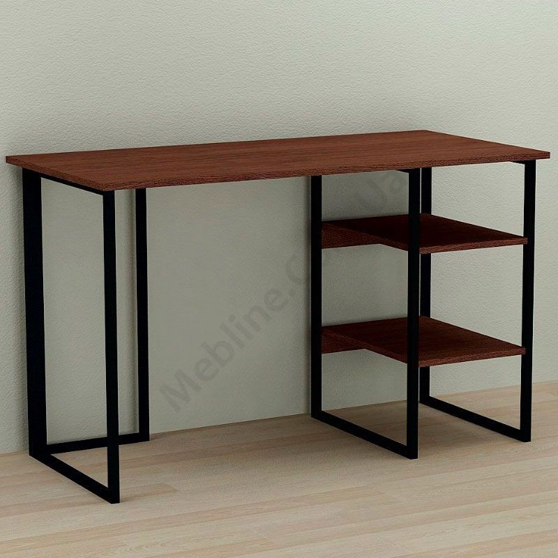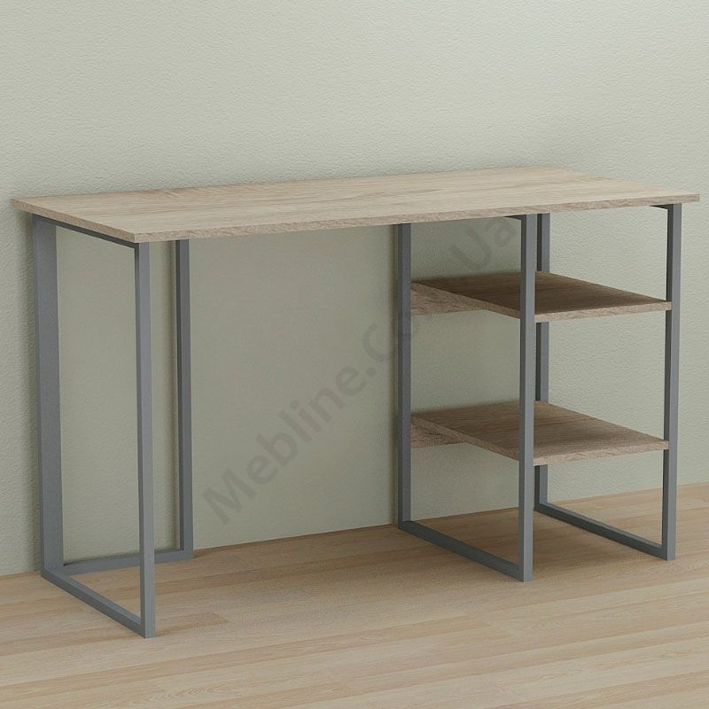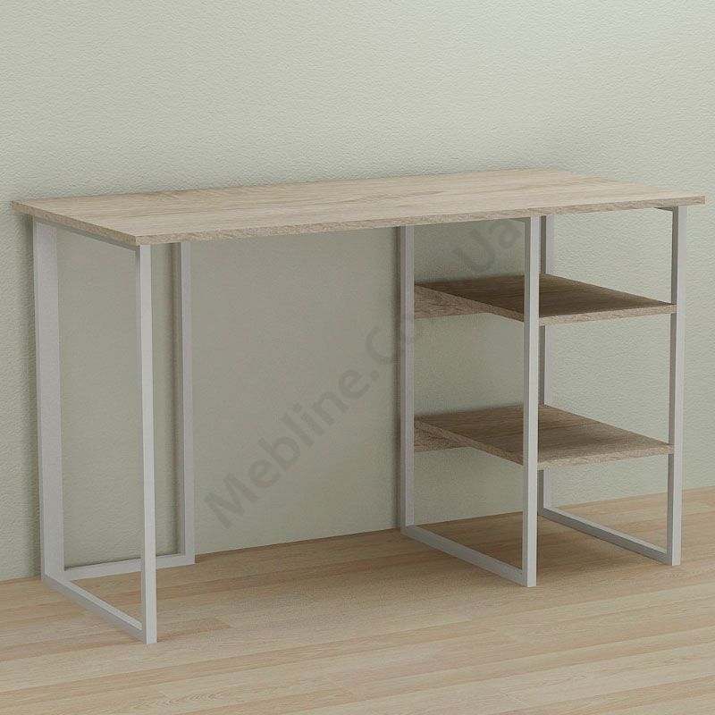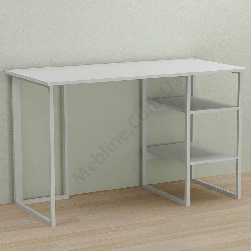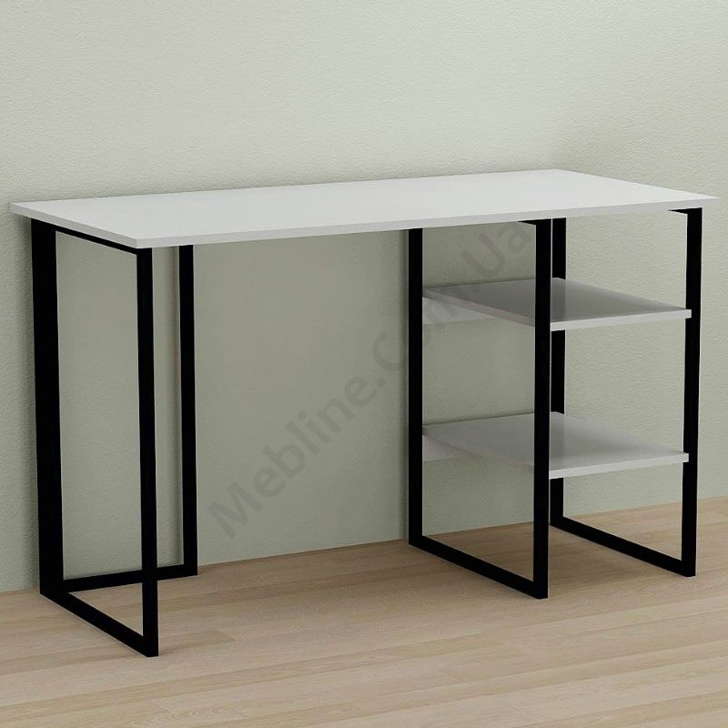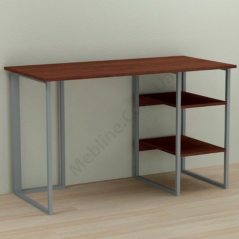 Комп’ютерний стіл на металевих ніжках з поличками.
