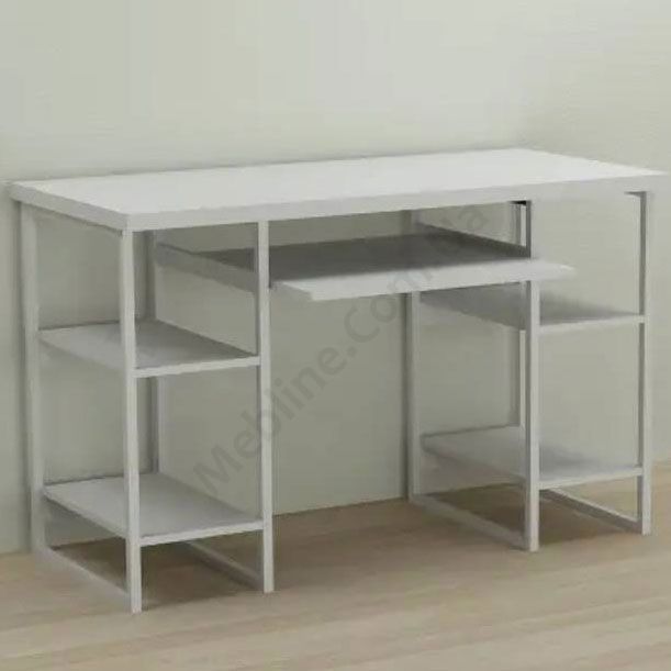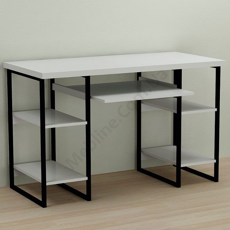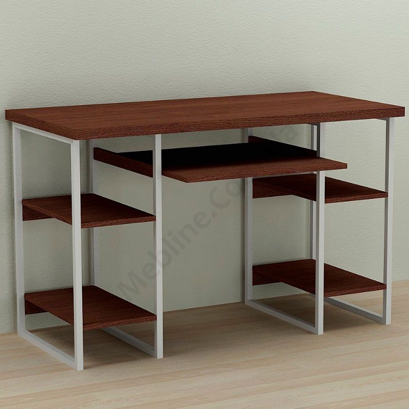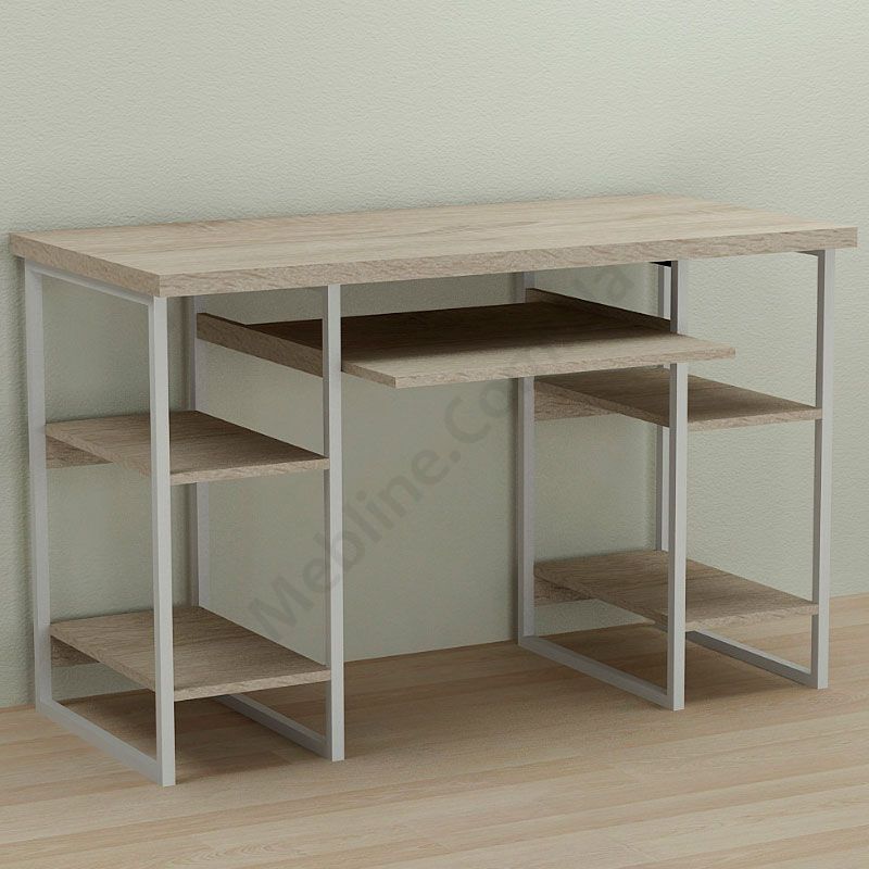 Комп’ютерний стіл на металевих ніжках з полицею для клавіатури.
