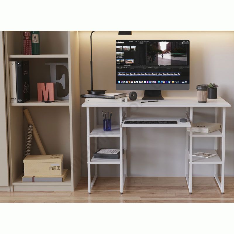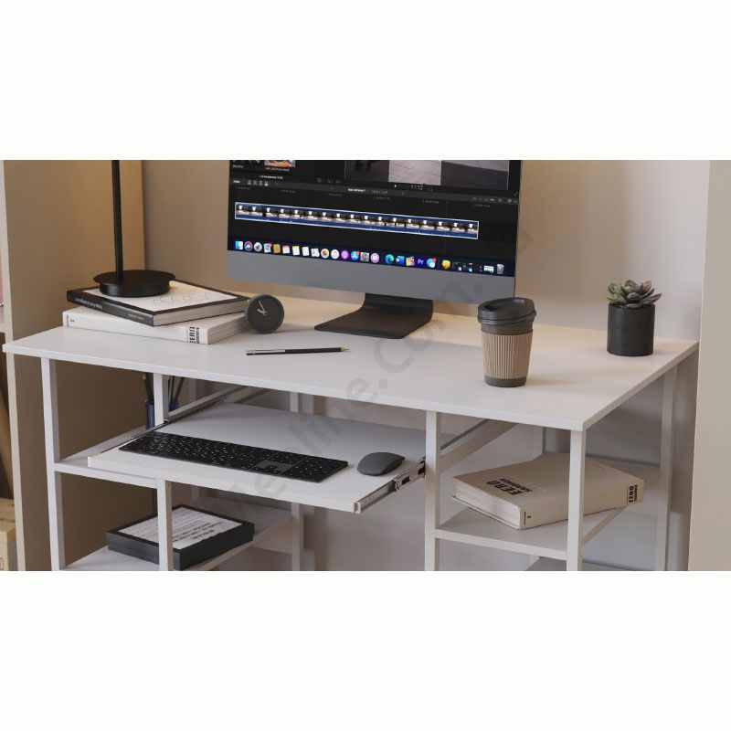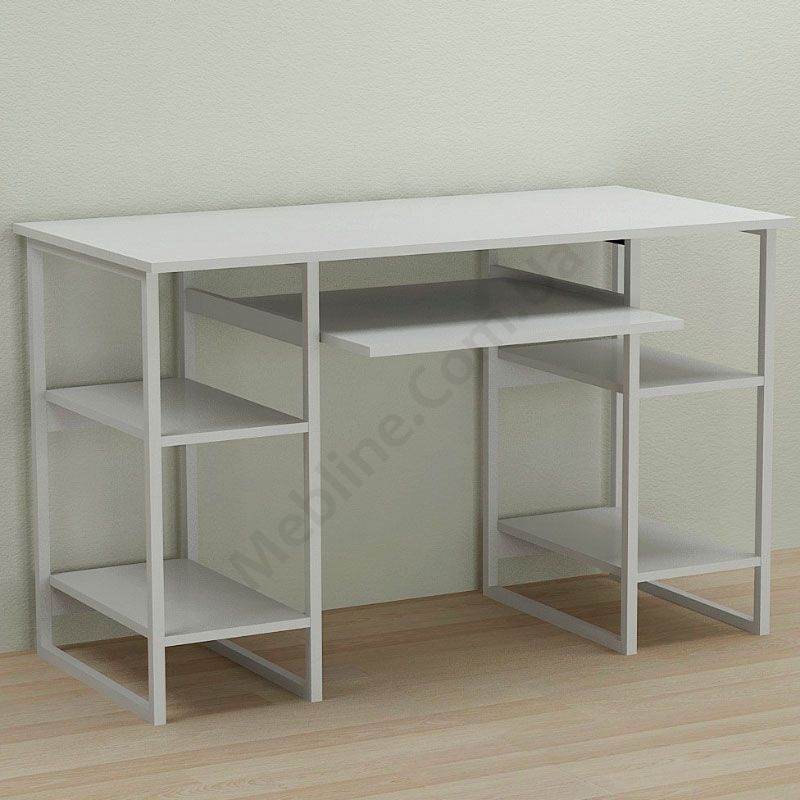 Комп’ютерний стіл на металевих ніжках з полицею для клавіатури.