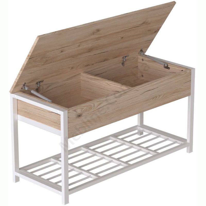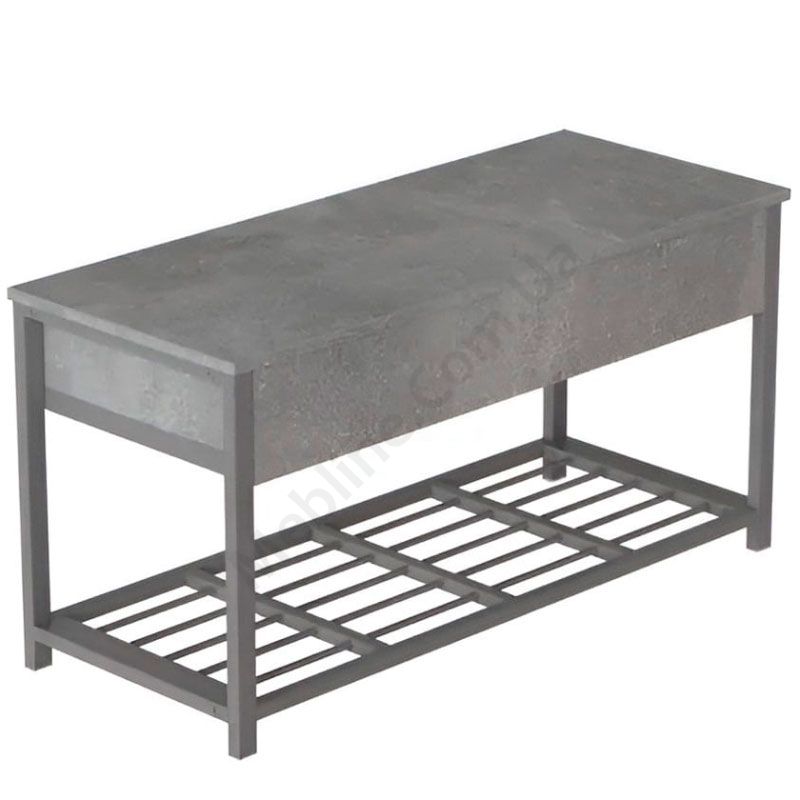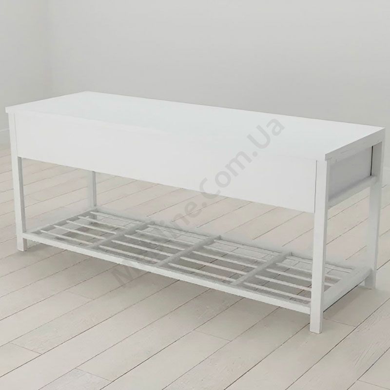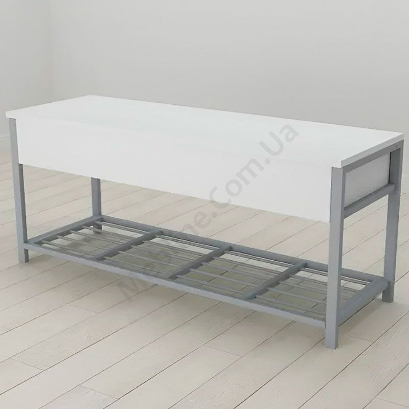 Тумба на металевих ніжках з полицею для взуття, сидінням та коробом.