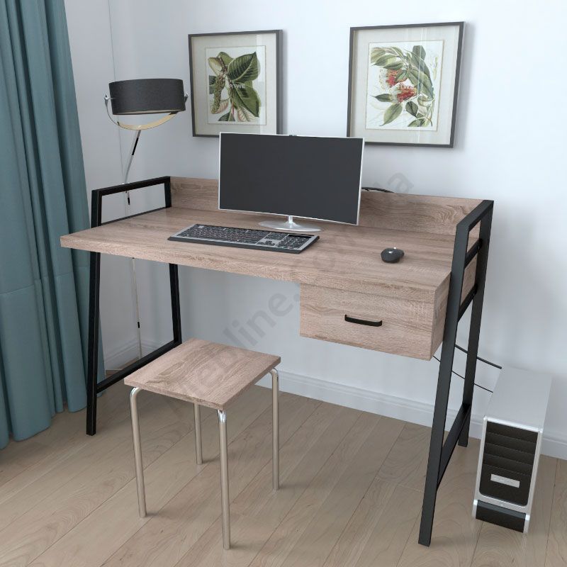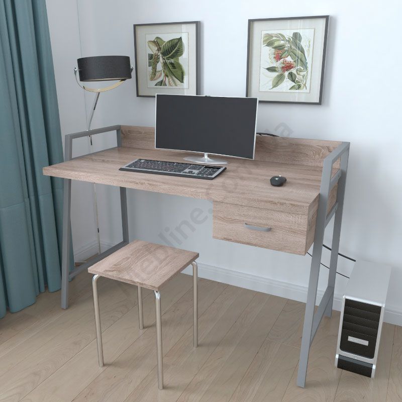 Комп’ютерний стіл на металевих ніжках з висувною шухлядою.