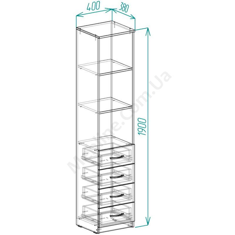 Пенал Анжело на 3 полиці із 4 ящиками 1900x400x380 - Ferrum-Decor