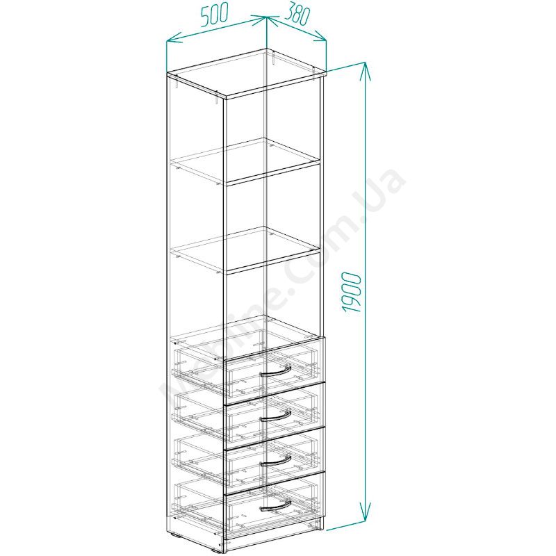 Пенал Анжело на 3 полиці із 4 ящиками 1900x500x380 - Ferrum-Decor