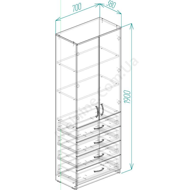У магазині Ви можете купити Шафа Анжело на 3 полиць з 2 дверима та 4 ящики 1900x700x380 за доступною ціною та доставкою по всій Україні. Обирайте Шафа (пенал) від фабрики Ferrum-Decor для облаштування передпокою, вітальні, спальні в інтернет магазині меблів.