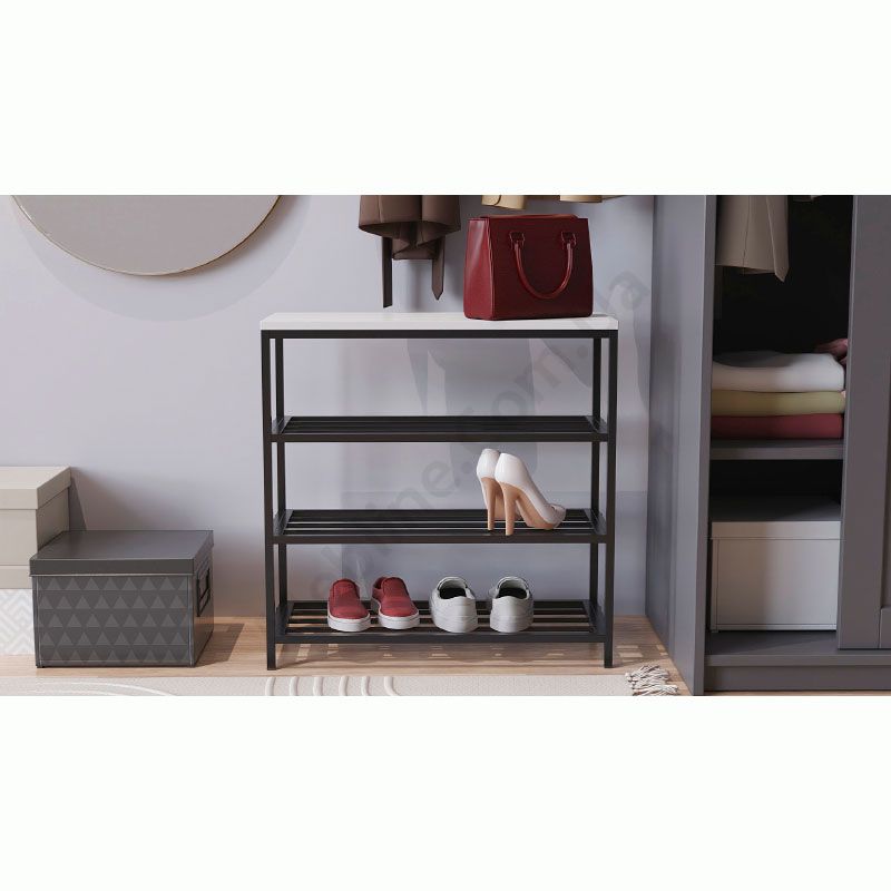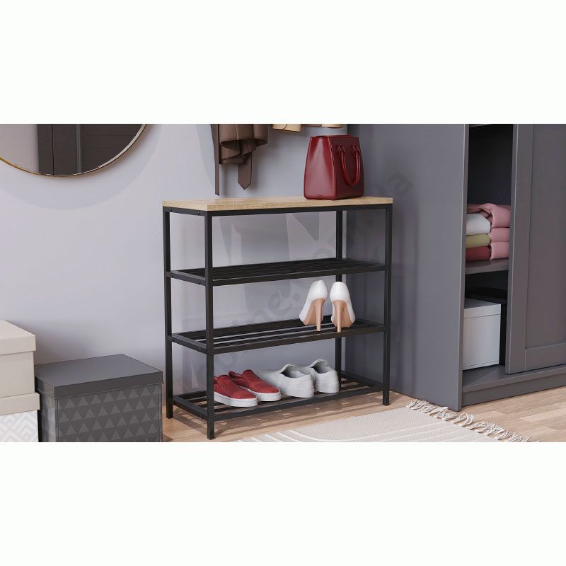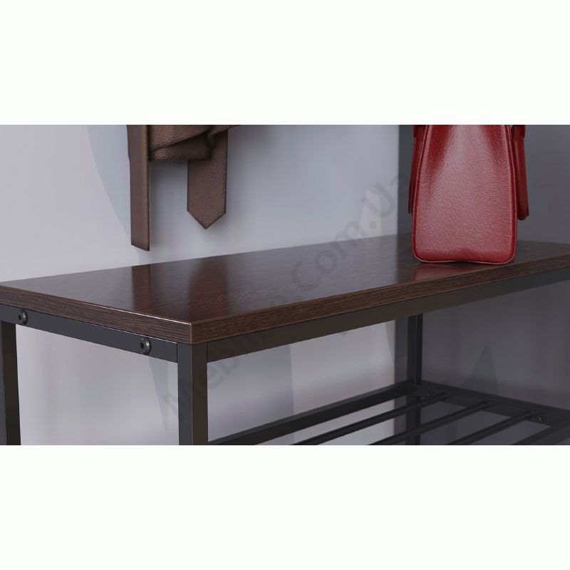 Лавка з металевими полицями для взуття.