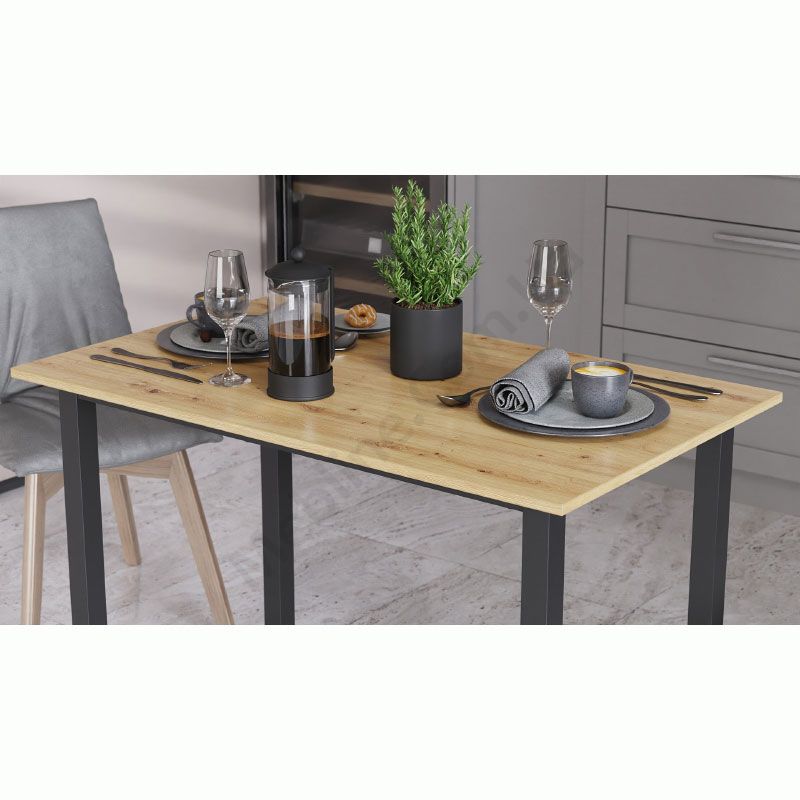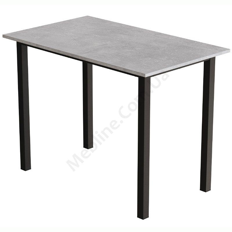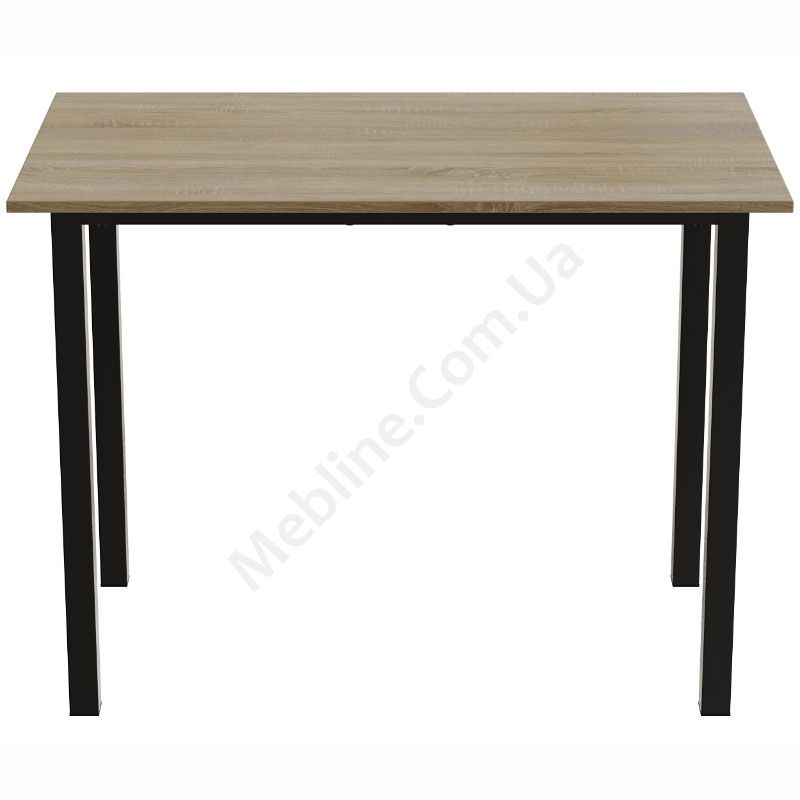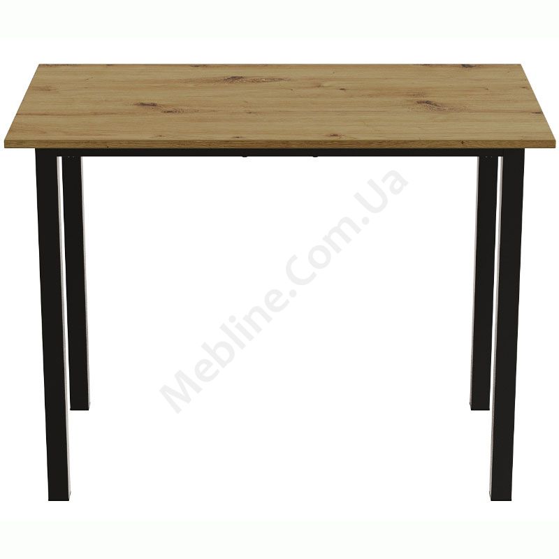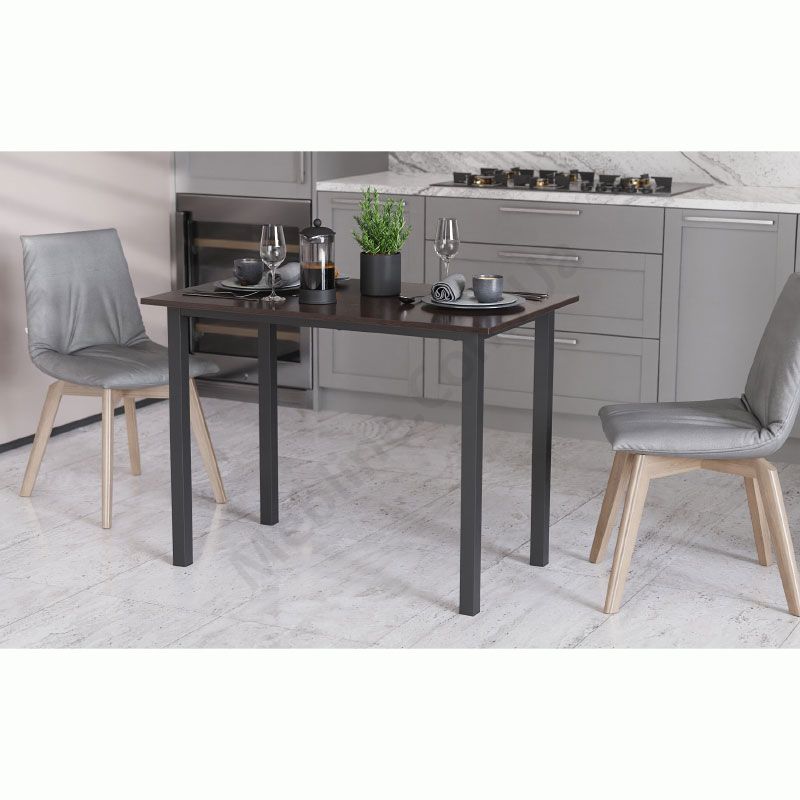 Нерозкладний обідній стіл прямокутної форми на металевих ніжках.