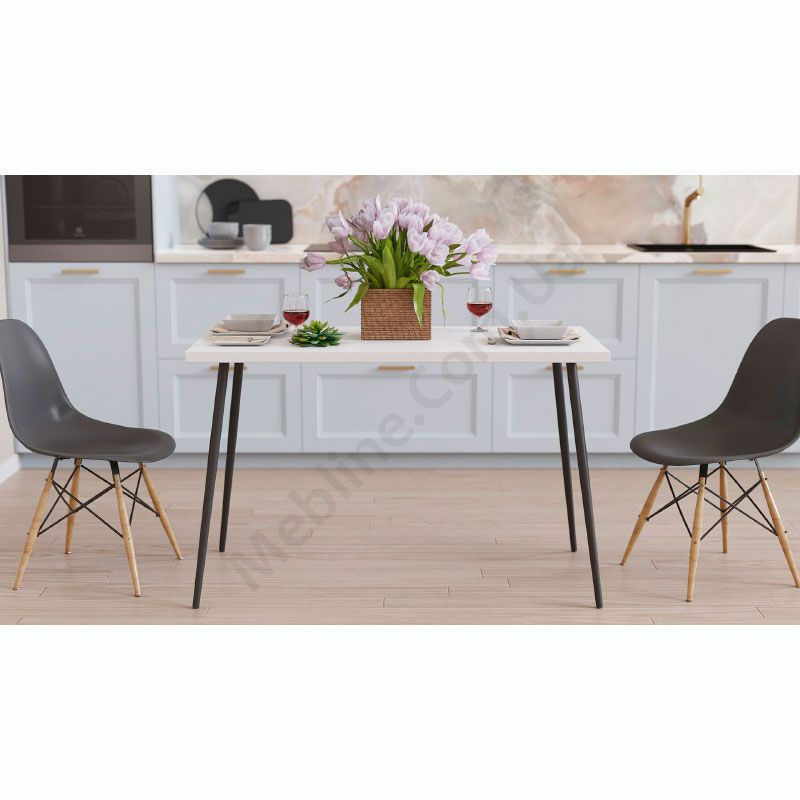 Нерозкладний обідній стіл на тонких металевих ніжках.