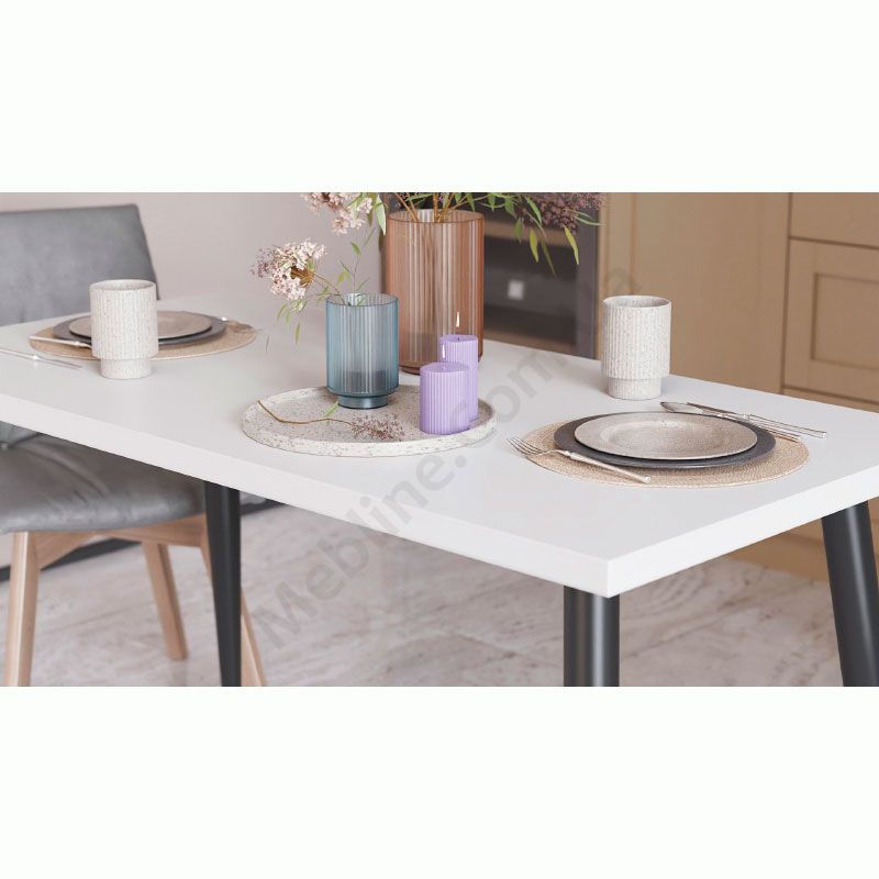 Нерозкладний обідній стіл на товстих металевих ніжках.