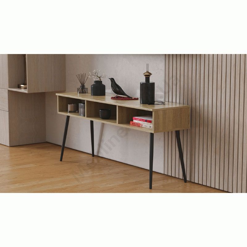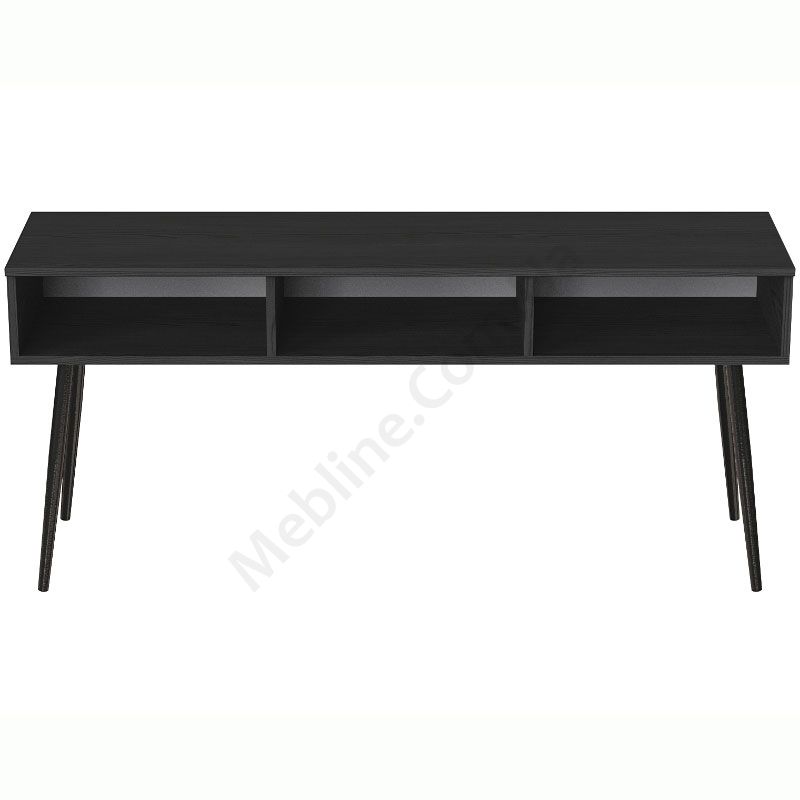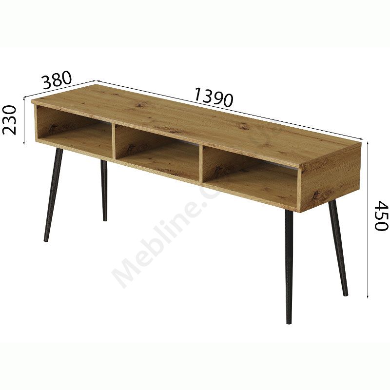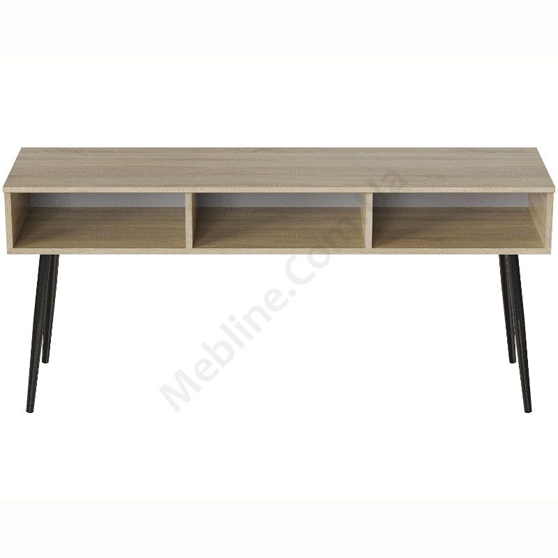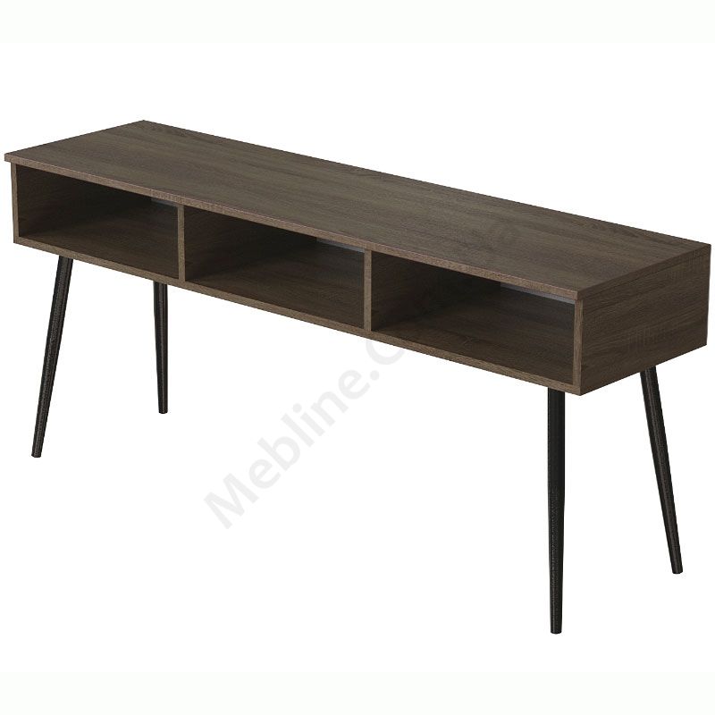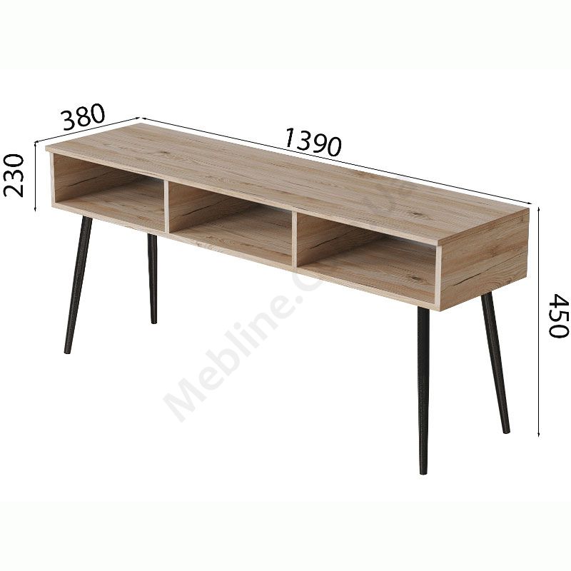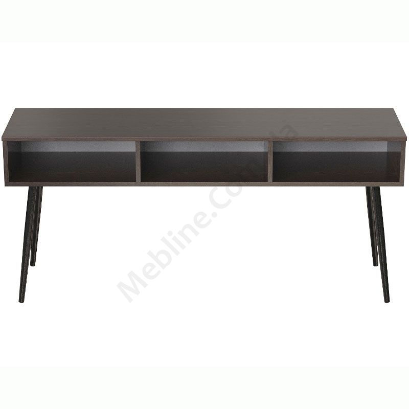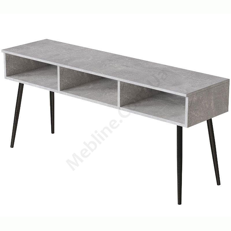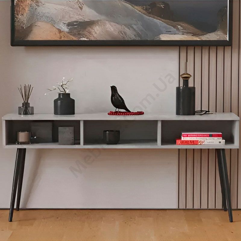 Тумба під телевізор на металевих ніжках з відкритими полицями.