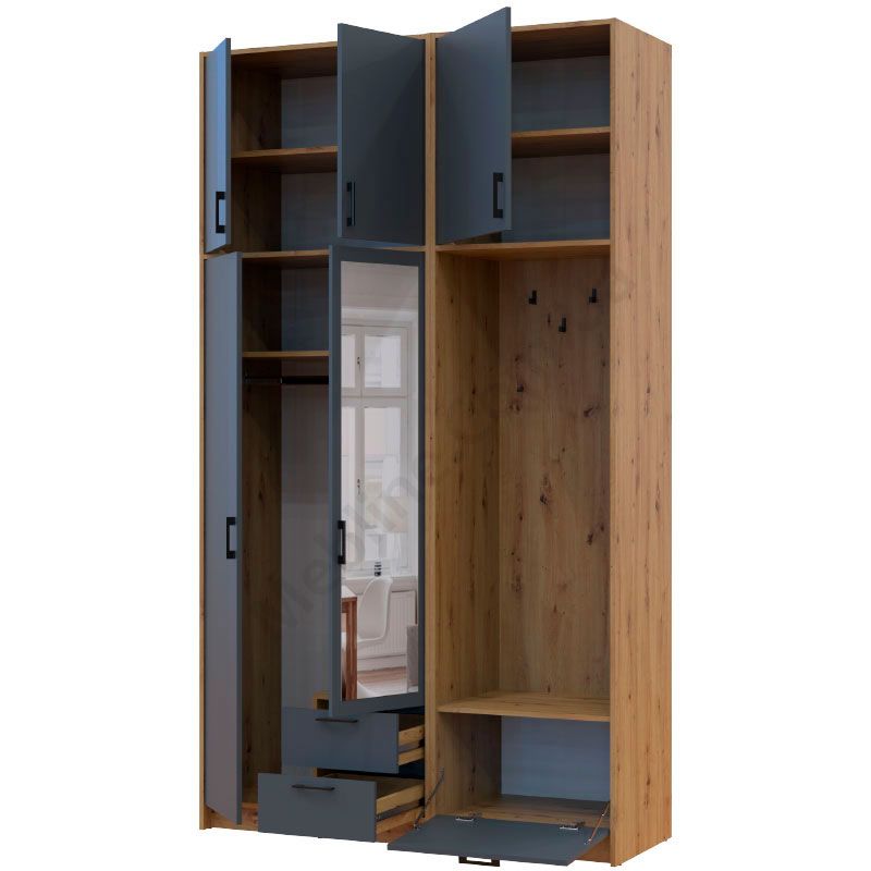 У магазині Ви можете купити Шафа для одягу Ронді з вішалкою, дзеркалом та високою антресолею 2 ДСП Дуб Артизан + Графіт за доступною ціною та доставкою по всій Україні. Обирайте Прямий передпокій від фабрики Doros для облаштування передпокою в інтернет магазині меблів.